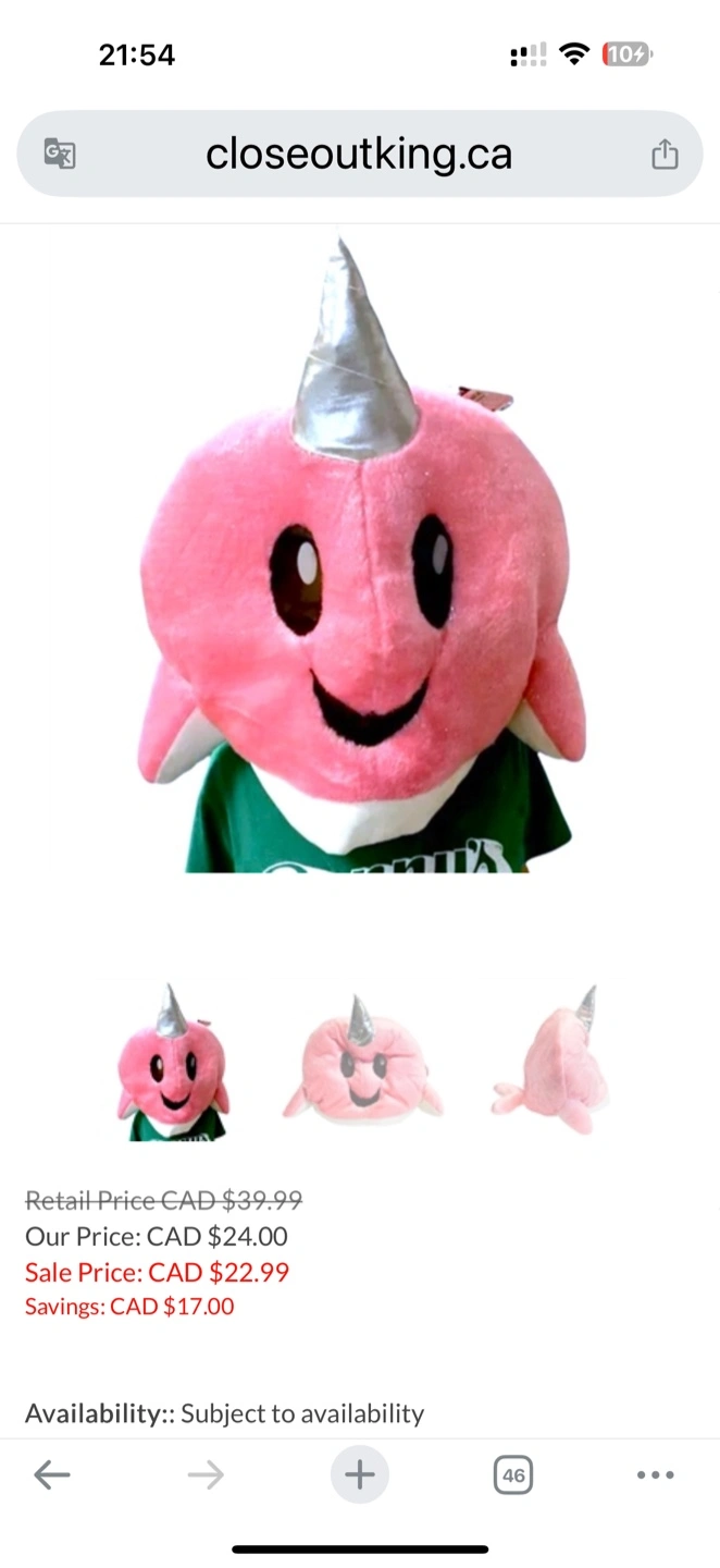 Super cute narwhal plush toy! It's in great condition and ready for a new home. Originally bought for $39.99, but now it's available for a steal