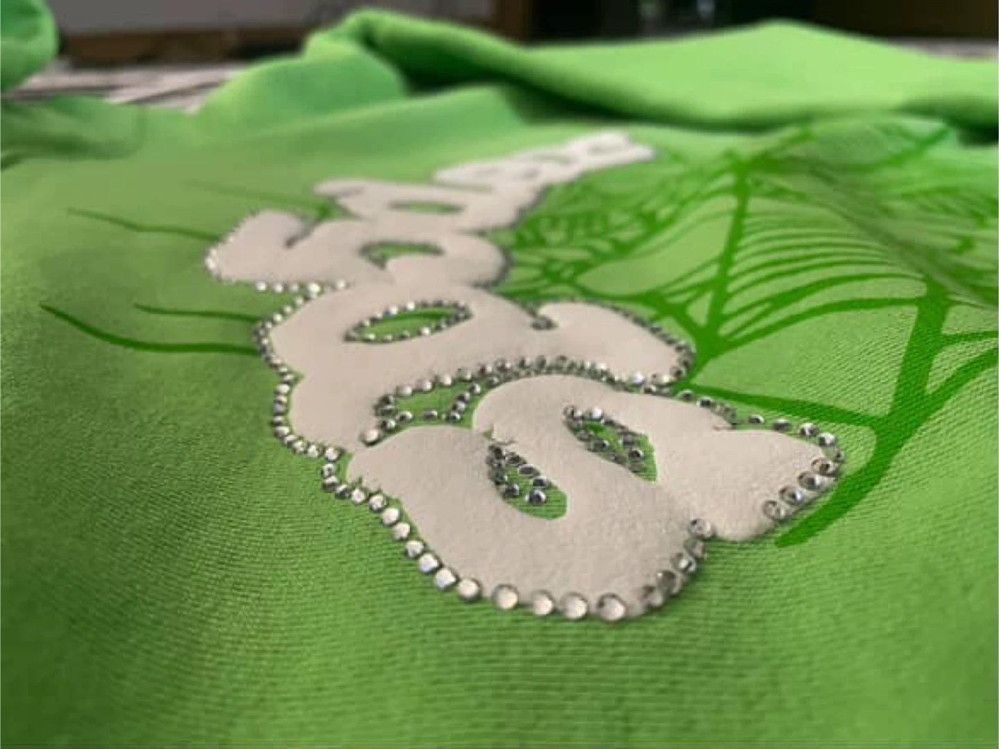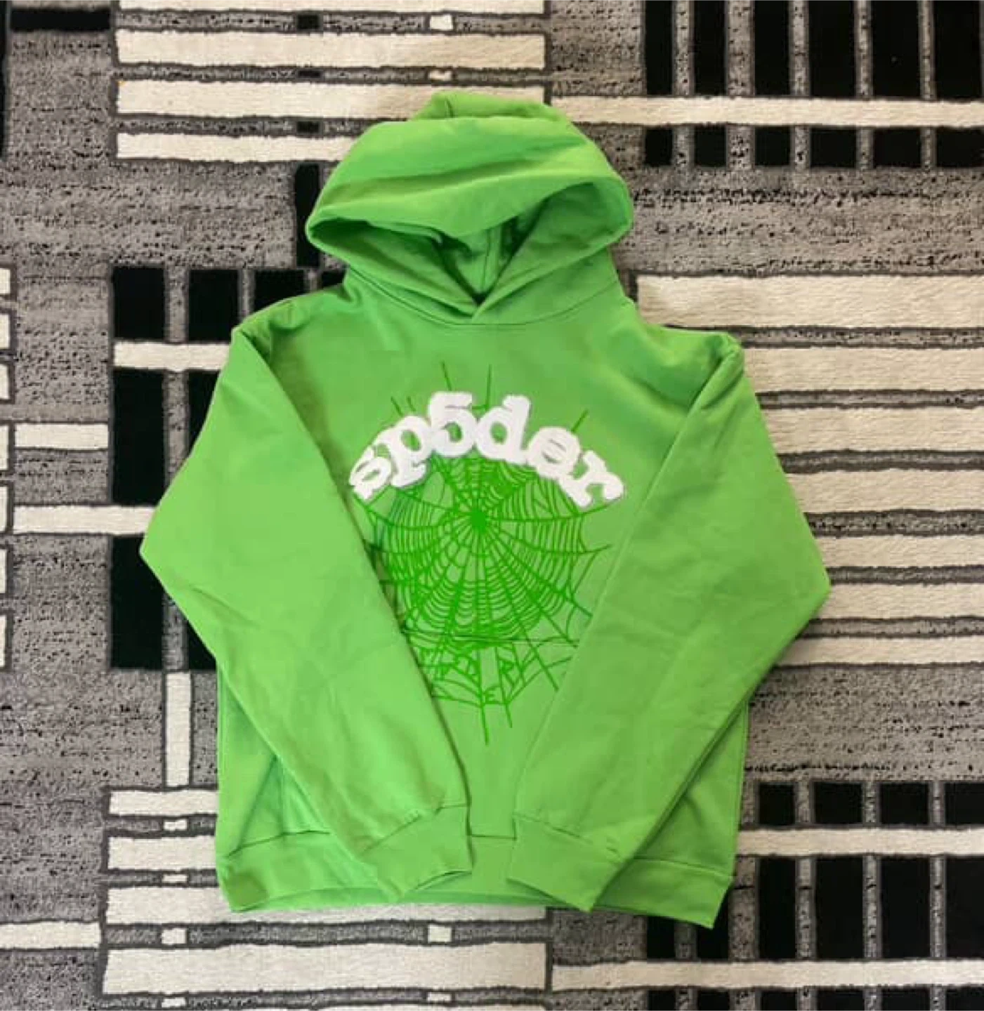 10Selling a bright green Sp5der hoodie with a white logo and spiderweb design. It's in great condition and ready for a new home Fits like XL R£p!lca