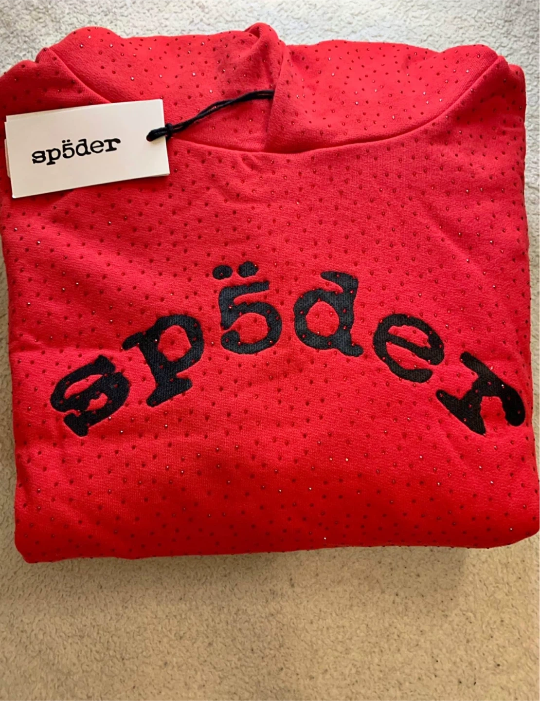 10Selling a vibrant red Sp5der hoodie! It's in great condition and ready to add a pop of colour to your wardrobe. The design features the Sp5der logo across the chest. Perfect for staying cozy and stylish!