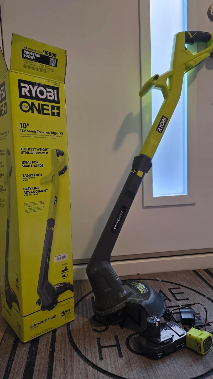 Ryobi ONE+ 18V 10" String Trimmer/Edger Kit. It's the lightest weight string trimmer. Ideal for small yards with easy edge and auto-feed head. This would be useful for maintaining smaller lawns and garden areas.
