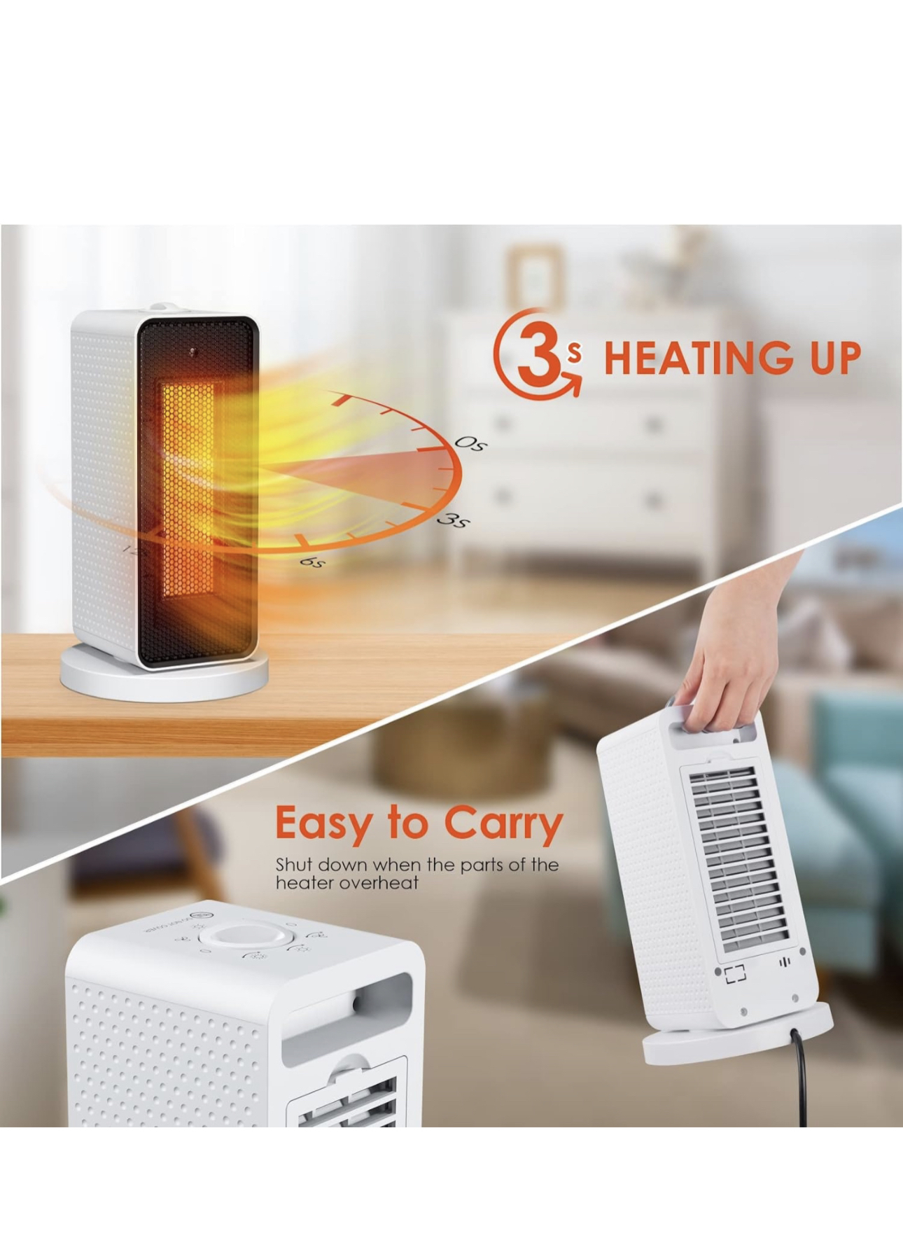 Space Heaters for Indoor Use Electric 90° Oscillation Portable Electric Space Heater Ceramic Heater with Thermostat Fast Heating Ultra Quiet Small Space Heater for Office Home Room White Pickup location Mississauga Creditview and Eglinton