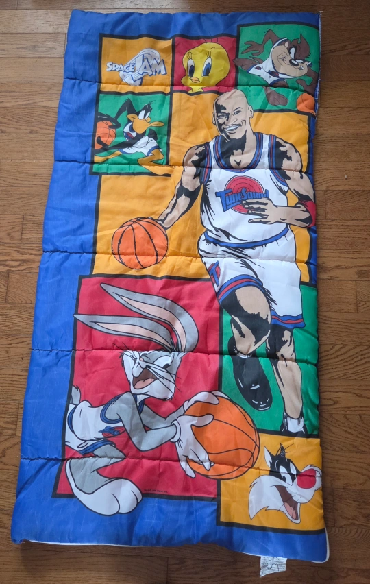 10Selling a Space Jam sleeping bag featuring Bugs Bunny, Michael Jordan, and other Looney Tunes characters! It's in great condition and perfect for kids or any Space Jam fan