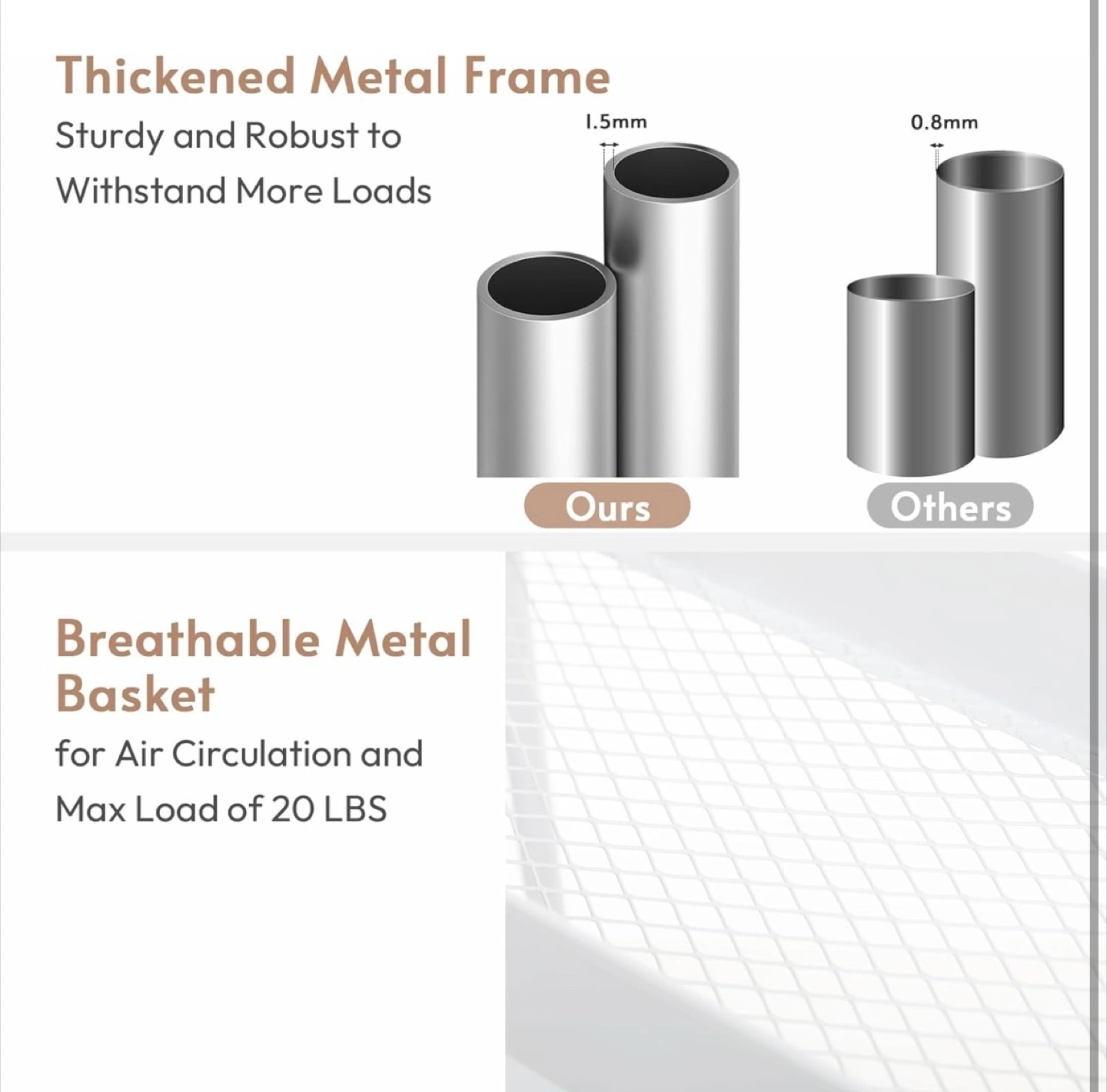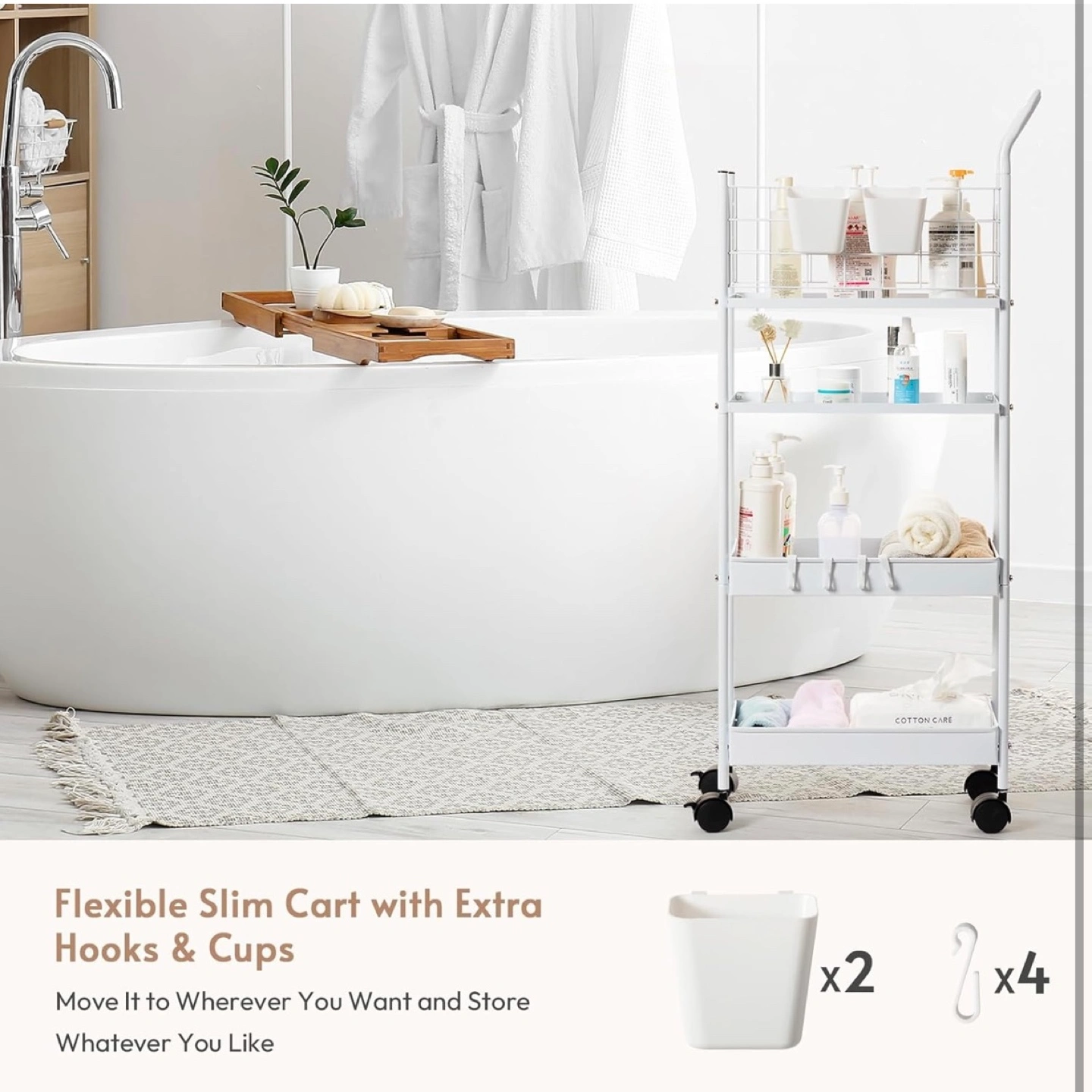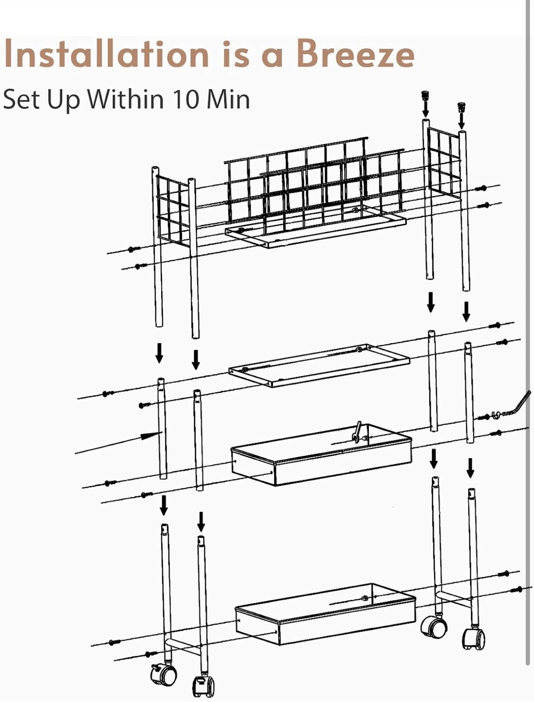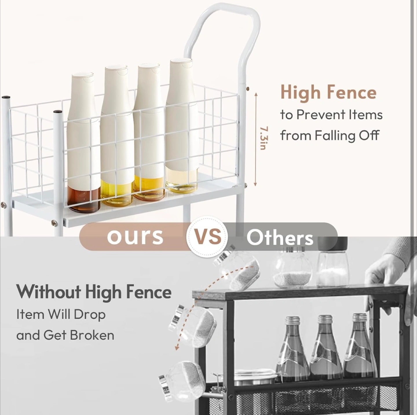 Looking to organize your space? This 7.7" space-saving storage cart is perfect for any room! It features a thickened metal frame, making it sturdy and robust. The breathable metal basket allows for air circulation, and it can handle a max load of 20 lbs. Plus, the high fence design prevents items from falling off. Installation is a breeze, set up within 10 minutes!