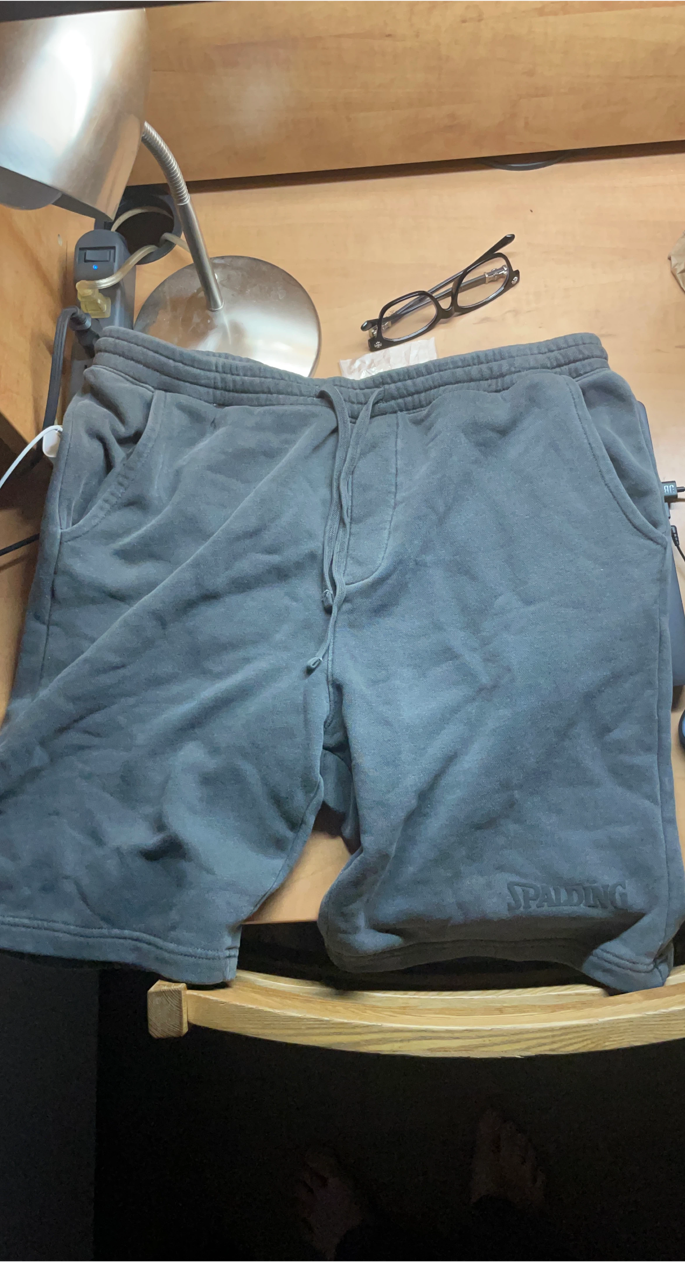 10Selling a pair of Spalding sweat shorts in grey. They're super comfy and great for lounging around the house or hitting the gym. Never worn size large. Needed a different size so I’m selling.
