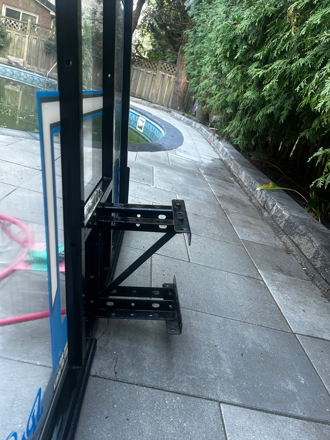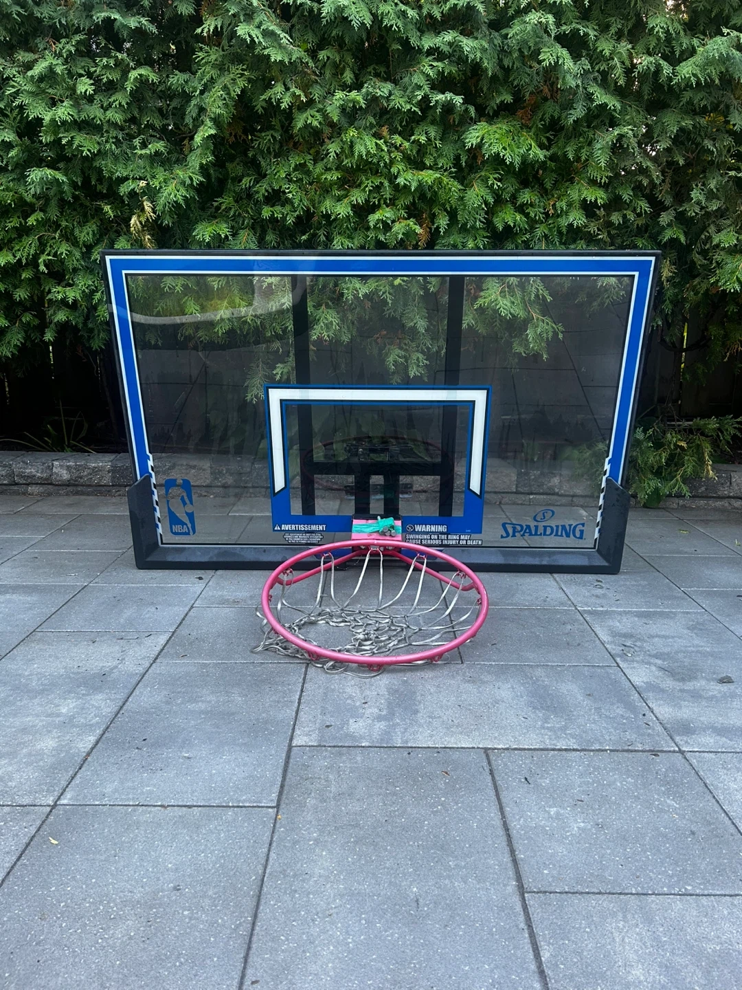 Spalding blue NBA basketball backboard and rim. It's in great condition and ready to be mounted with bracket and screws included. minor scratches and rusting