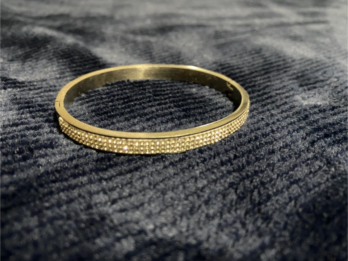 73Here we have a free silver-toned bangle bracelet. It has a row of rhinestones around the outside. It's in great condition! Be sure to check my other listings!