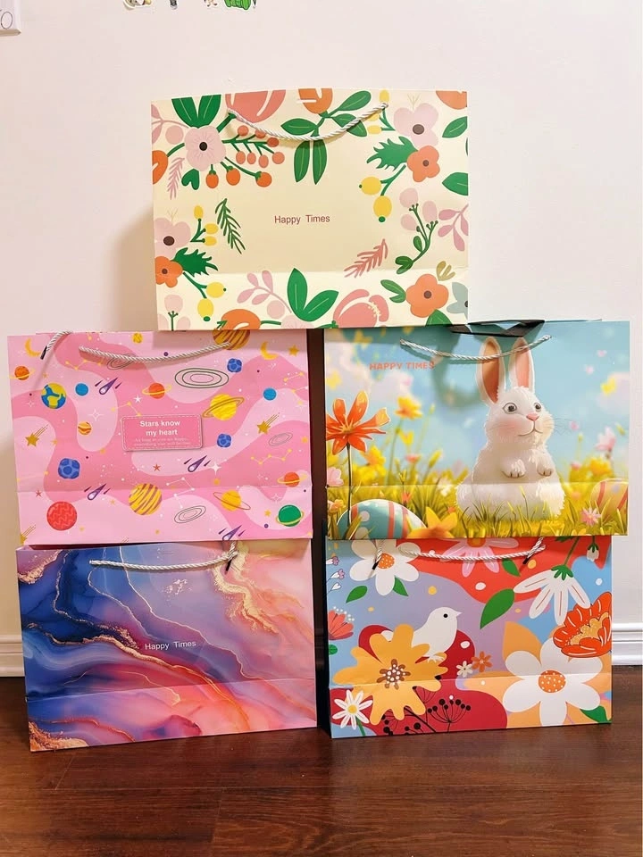 Gift bags, great for birthday parties, baby showers, small events, or gift wrapping. Material is strong paper; the smallest size is non-woven fabric.