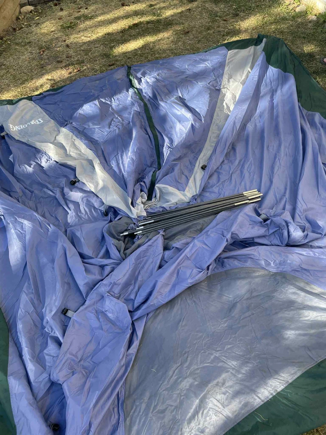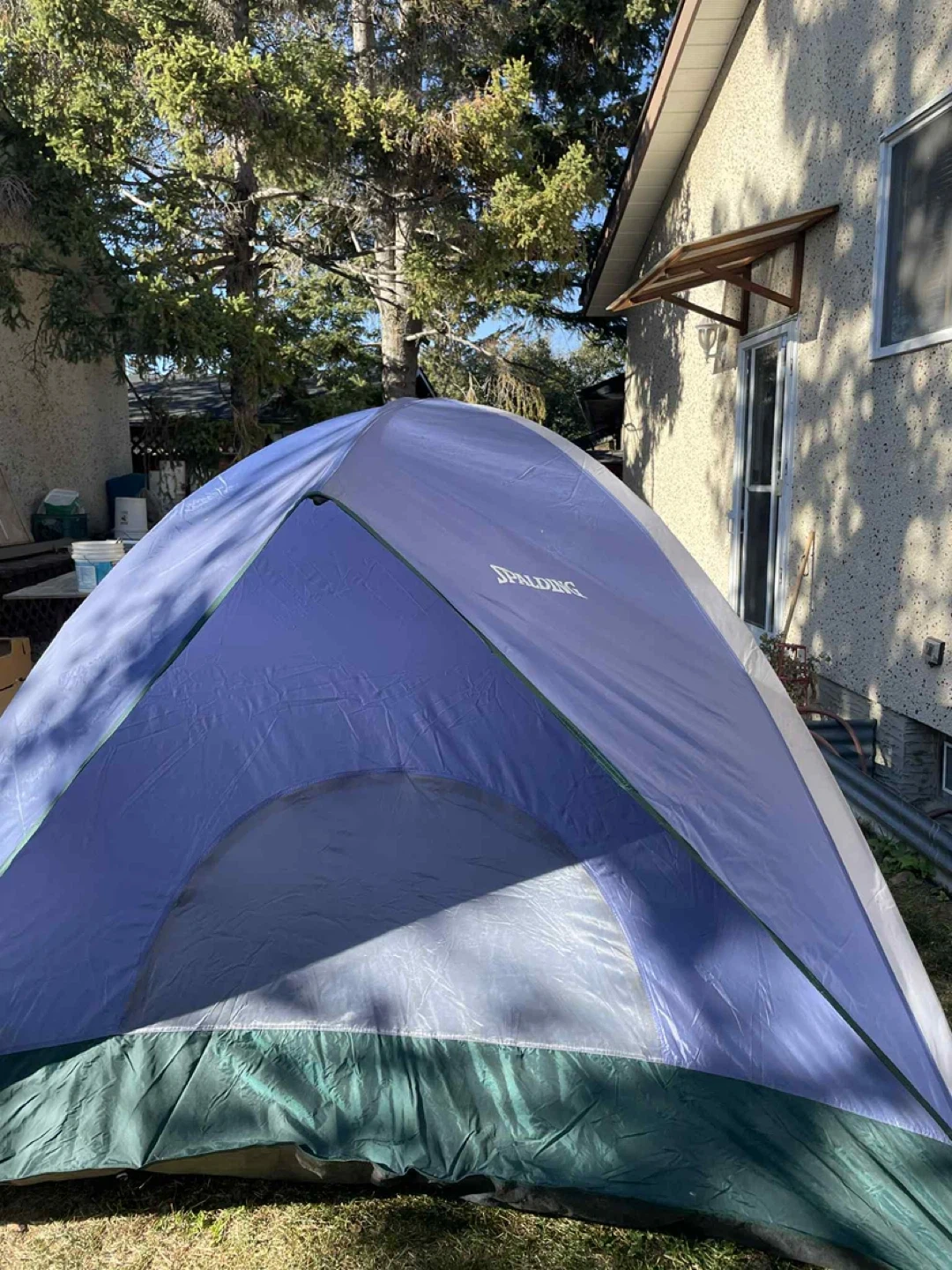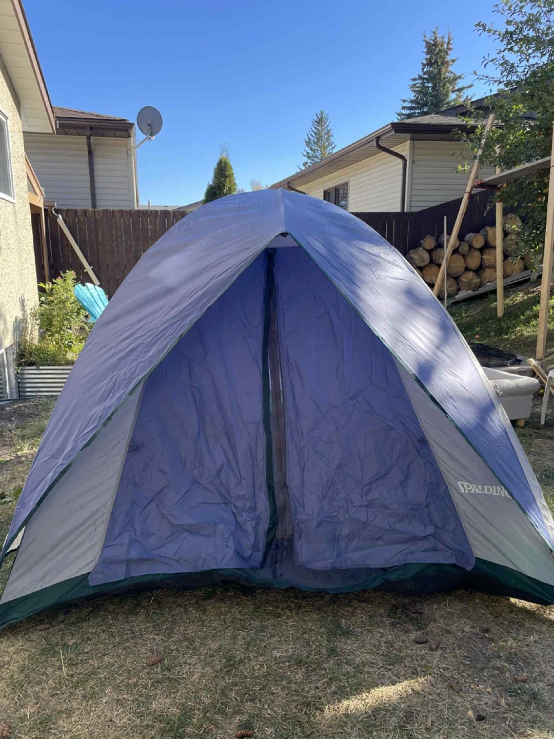 Spalding Dome Tent Tent sleeps 2-3 comfortably 3-season, waterproof tent, easily set up in 5 minutes No holes, rips, or damage to the tent Tent includes all poles, the rain fly, and the carrying bag $60