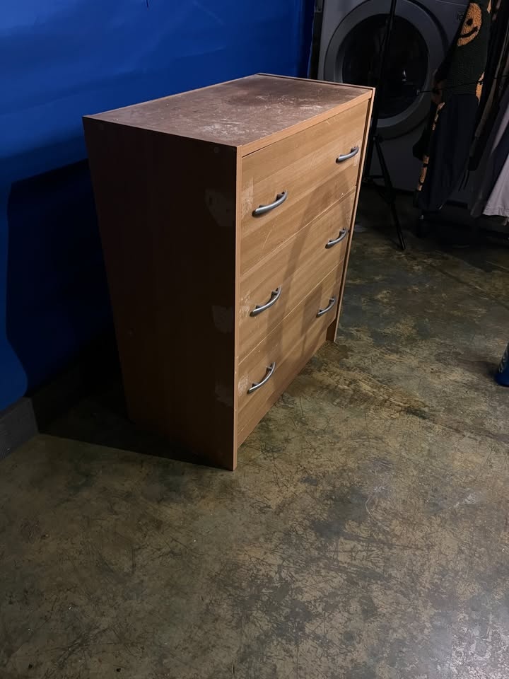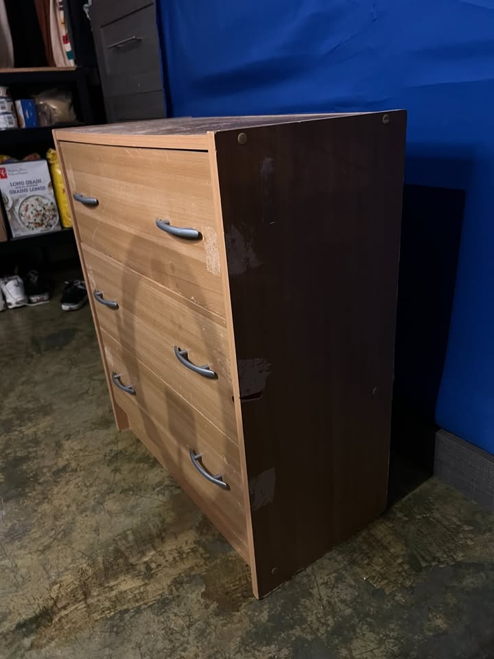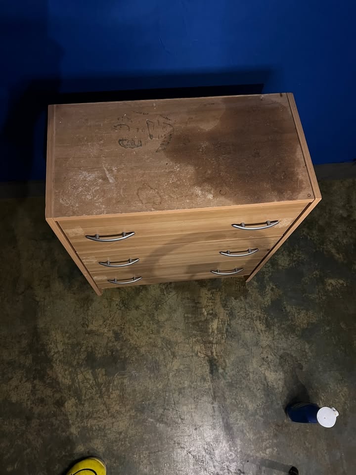 Giving away a 3-drawer dresser for FREE. Structurally sound (drawers open and close fine), but cosmetically rough. The top surface is worn and there is sticker residue on the front. Perfect for a garage, workshop tools, inside a closet, or as a painting project. Sturdy particleboard with silver handles. Pick up in Gastown.