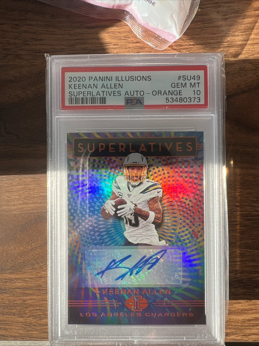 2020 Panini Illusions Keenan Allen Superlatives Auto - Orange trading card. Graded Gem MT 10 by PSA. Features an autograph from the Los Angeles Chargers player.
