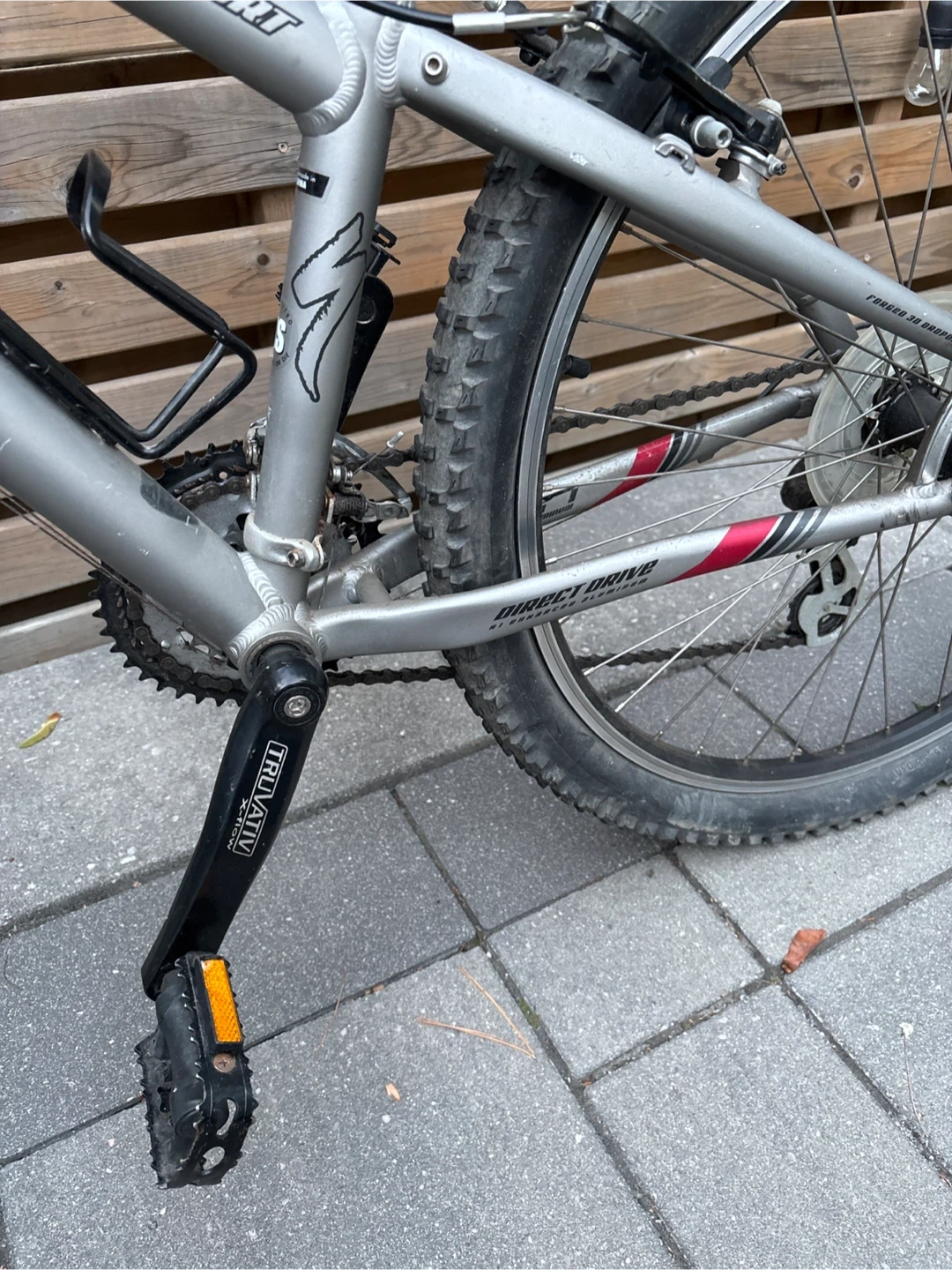 10Selling a Specialized Hardrock mountain bike. It's in great condition and ready for some trails or city riding! The frame is silver with red accents. It has Truvativ cranks.