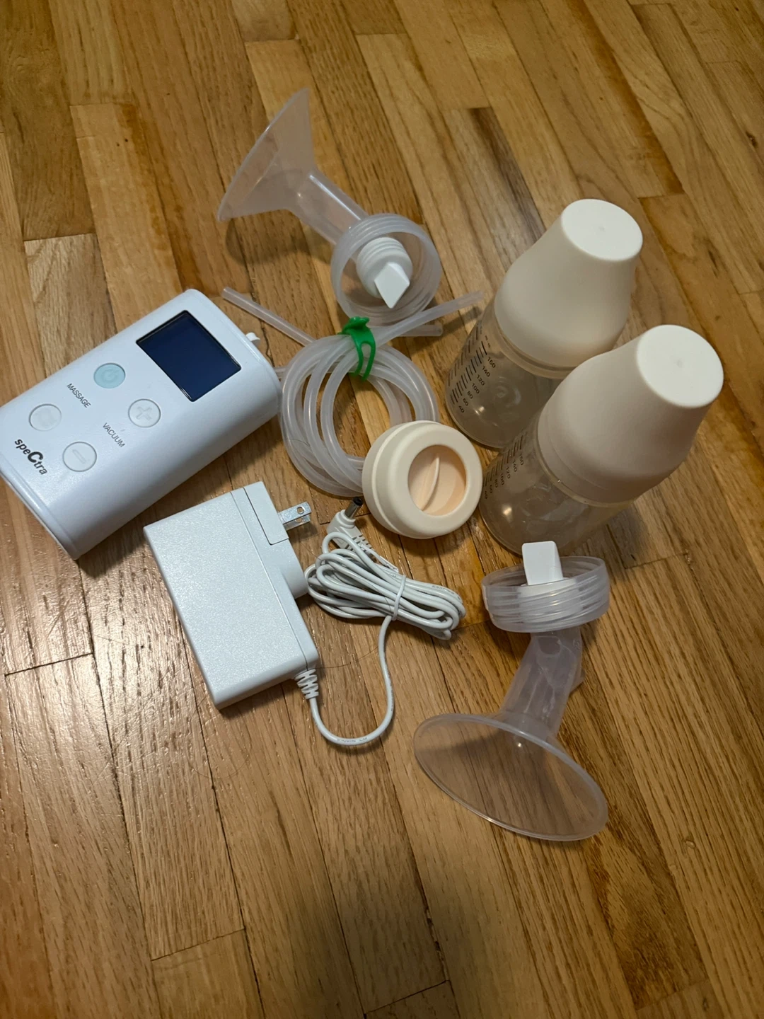 Selling a Spectra 9 Plus electric breast pump. It comes with all the parts you see in the photos, including the pump, bottles, flanges, tubing, and power adapter. Great for moms on the go!