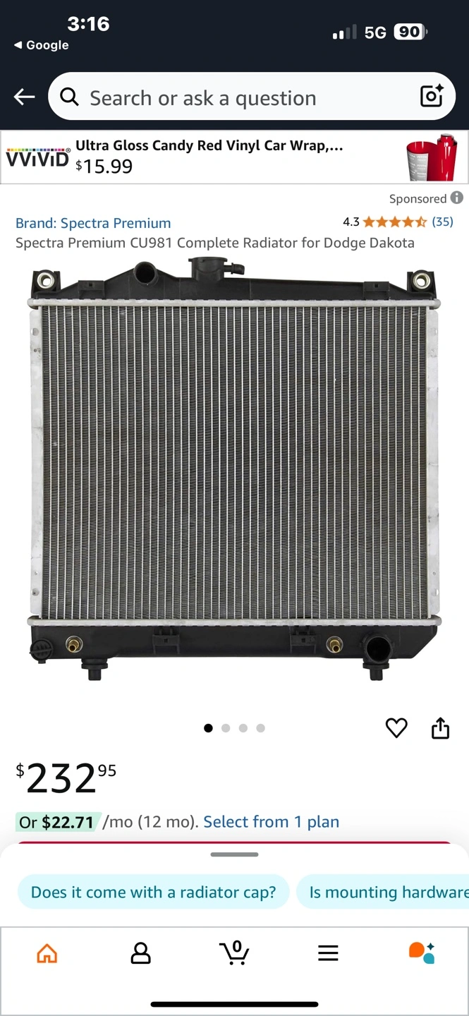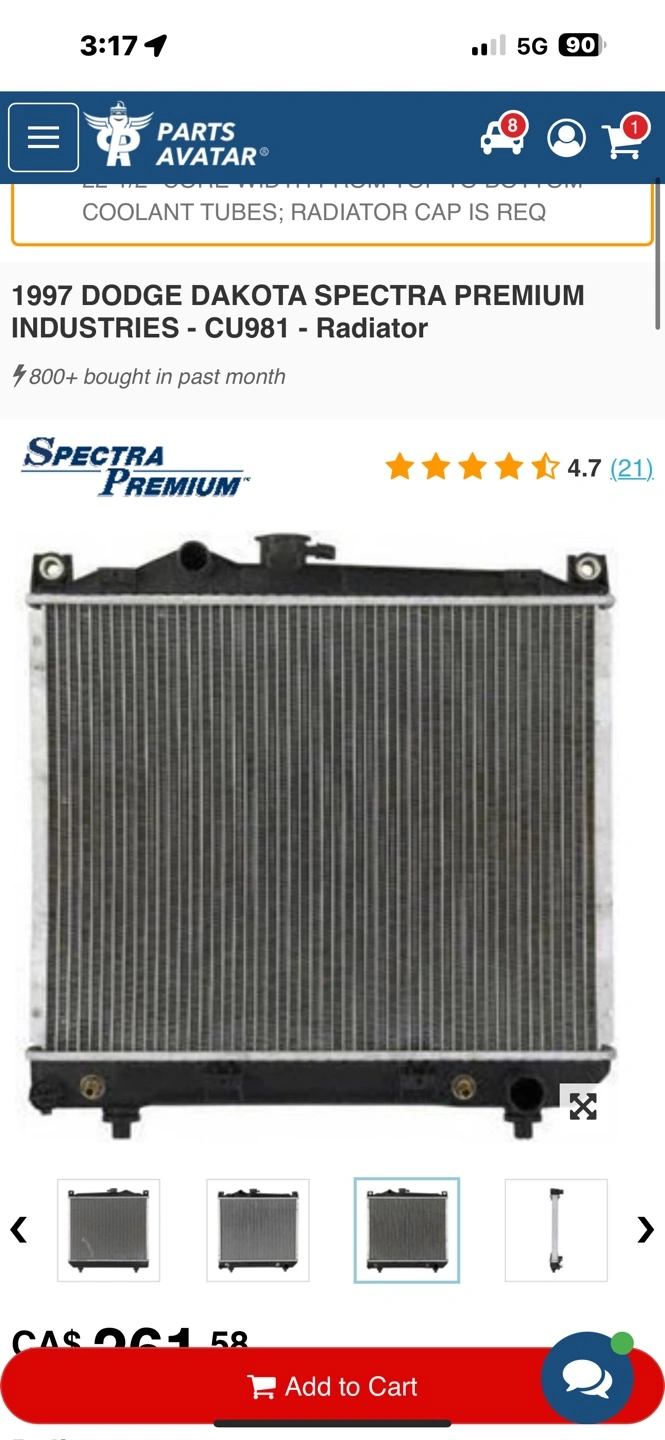 Spectra Premium CU981 Complete Radiator for 1987-1999 Dodge Dakota Dodge Dakota Base L4 2.5L · Dodge Dakota Base V6 3.9L · Dodge Dakota Base L4 2.2L · Retail Amazon: $232.95 Partsavatar: $261.58 + tax Asking: $125 Brand new never installed Comes in box opened for photos Pick Up Waterdown Area