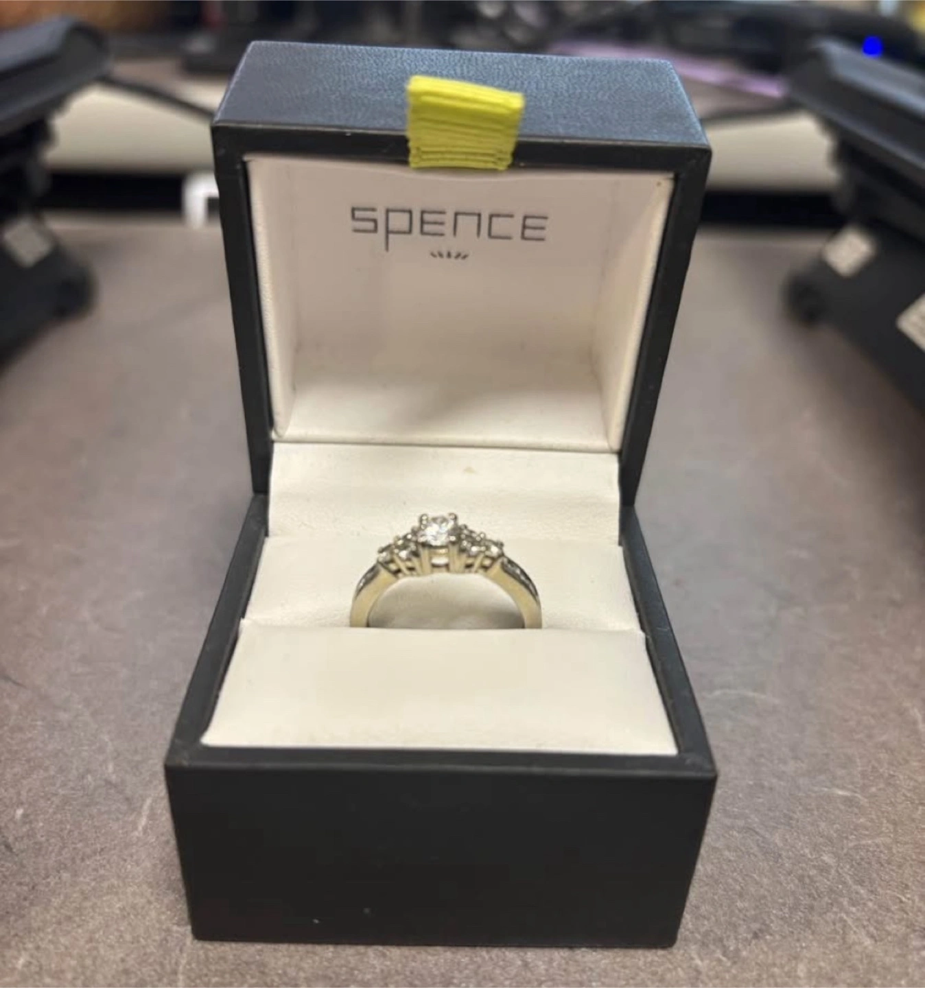 10Selling my engagement ring that was purchased from Spence Diamonds. Asking $1200.00 for it. Ring is size 6 and 19k white gold. The center stone is a 0.33k SV1 natural diamond. I can provide the certificate showing this. The lady I talked to at Spence said this set up would cost $3500 now.