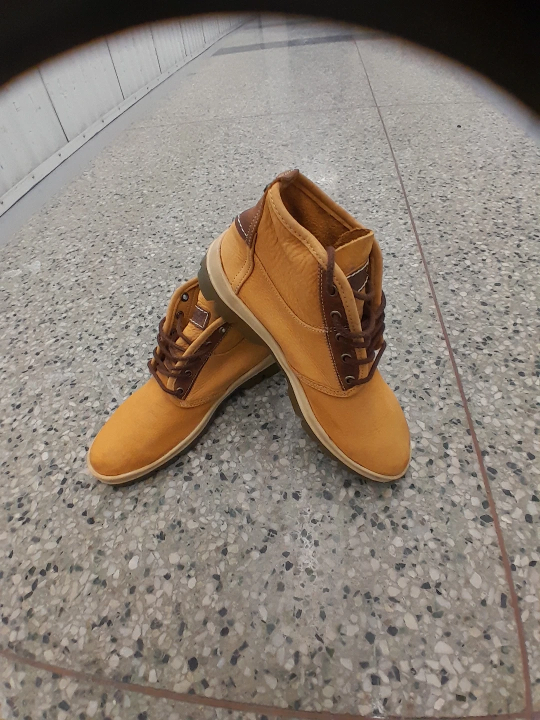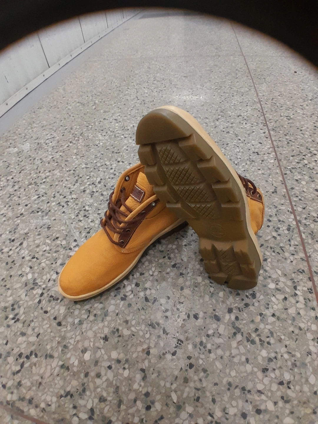 All Season chukka boots are a stylish tan suede. They feature a lace-up closure and a durable rubber sole. These boots are great for everyday wear Men's size 9