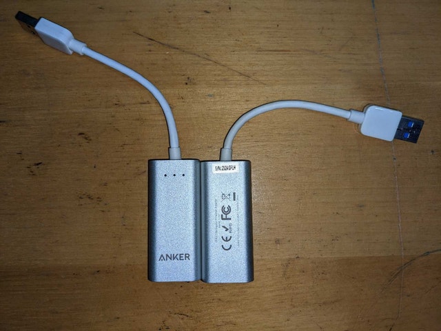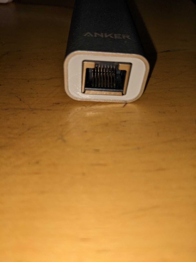 Anker USB to Ethernet adapter. Has lights on top to indicate connection. Great quality. Pickup at Dufferin and Lappin.