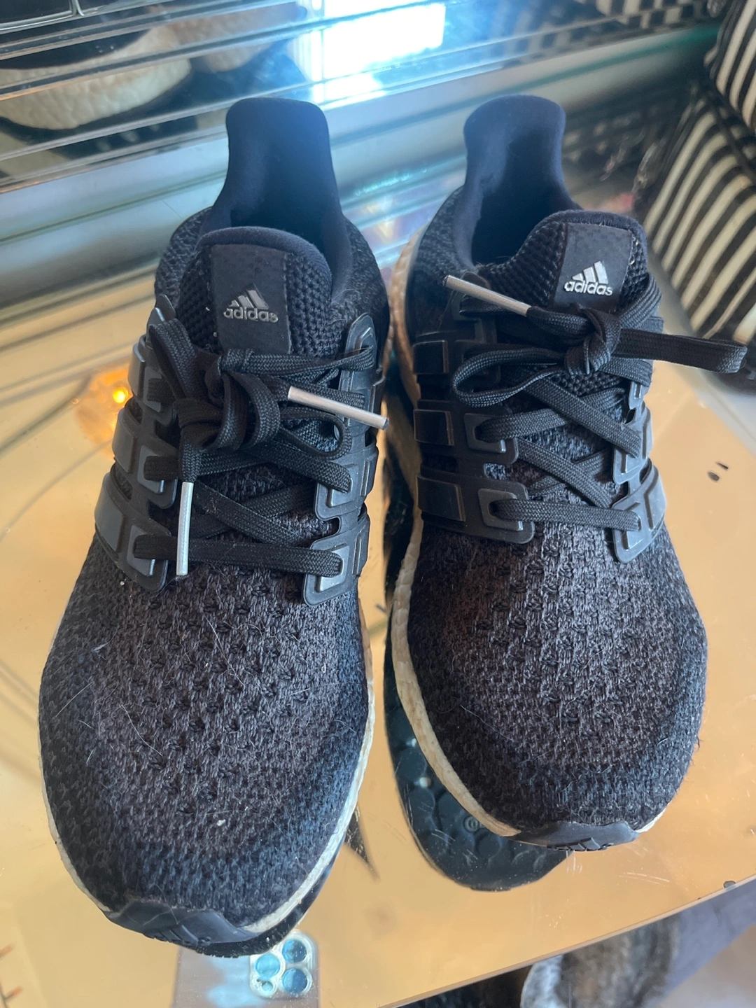 Black running shoes with white soles. Good condition. They need to be clean a little bit.