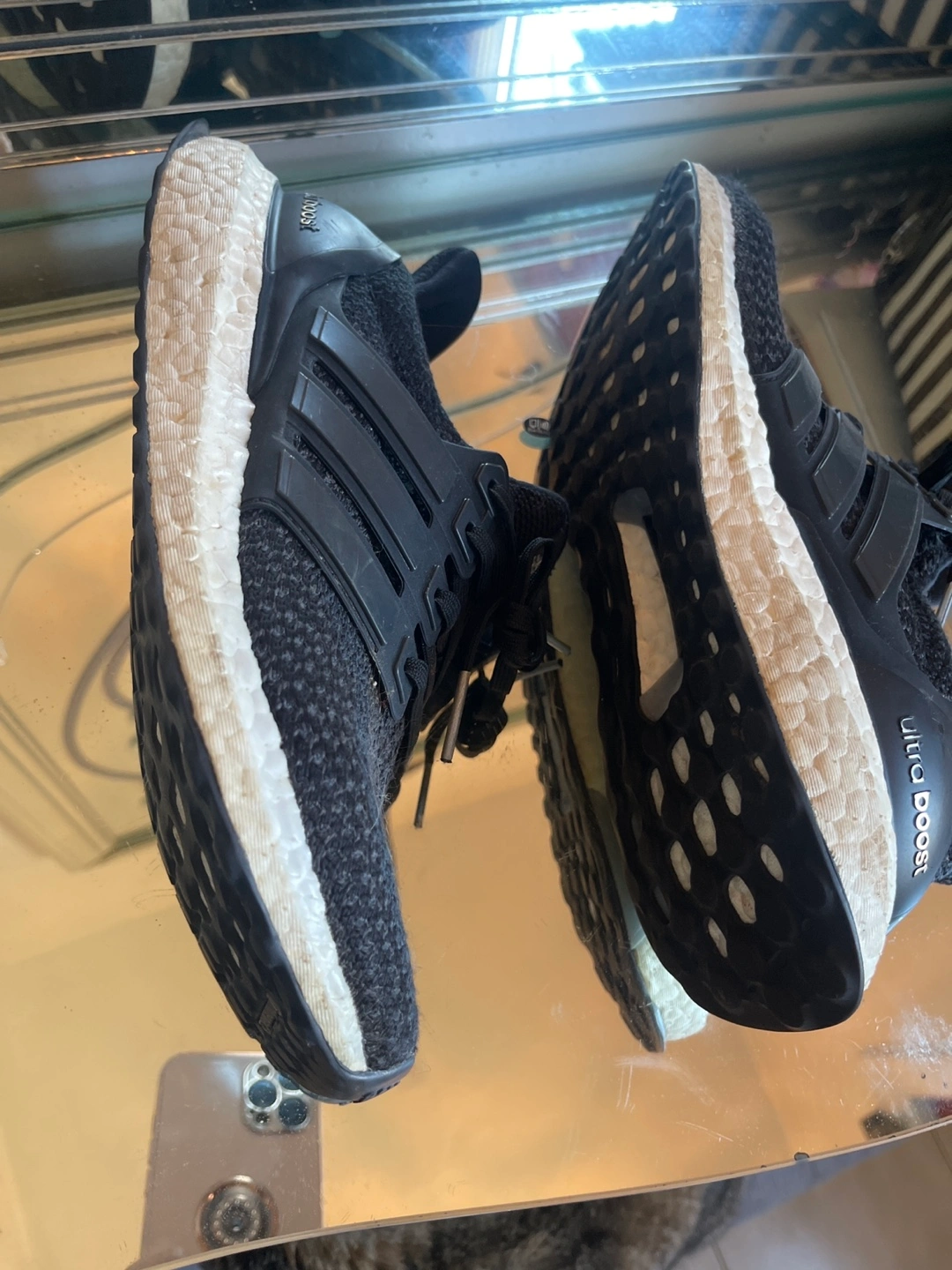 Black running shoes with white soles. Good condition. They need to be clean a little bit.