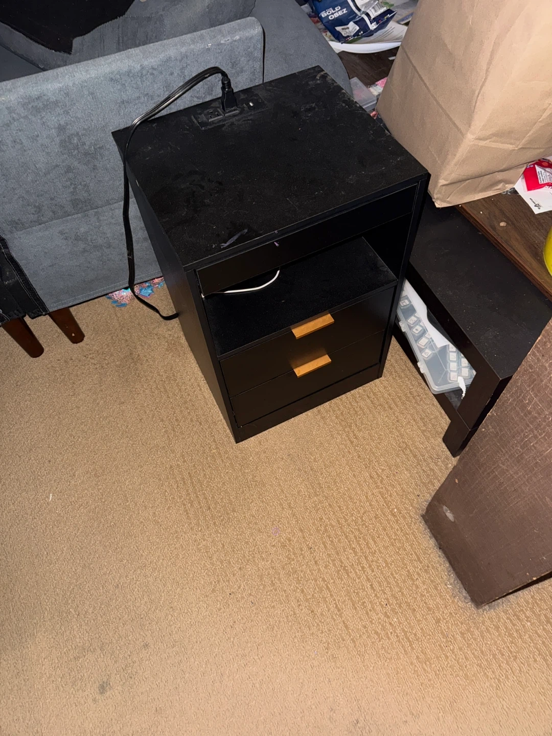 Black Nightstand with Built-in Power Outlet