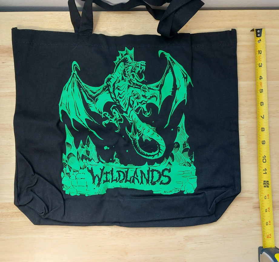 Brand new fantasy tote bags with iconic Dwarven Forge D&D images. Features the Hellscape, Wildlands, and Caverns Deep imagery.