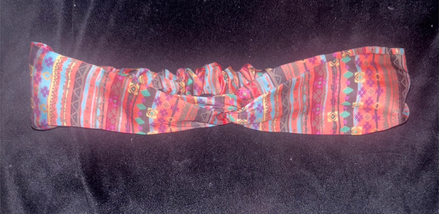 Features a colorful boho-inspired striped pattern with a twisted knot detail. This headband is made from a soft fabric material. It's a stylish accessory for everyday wear!