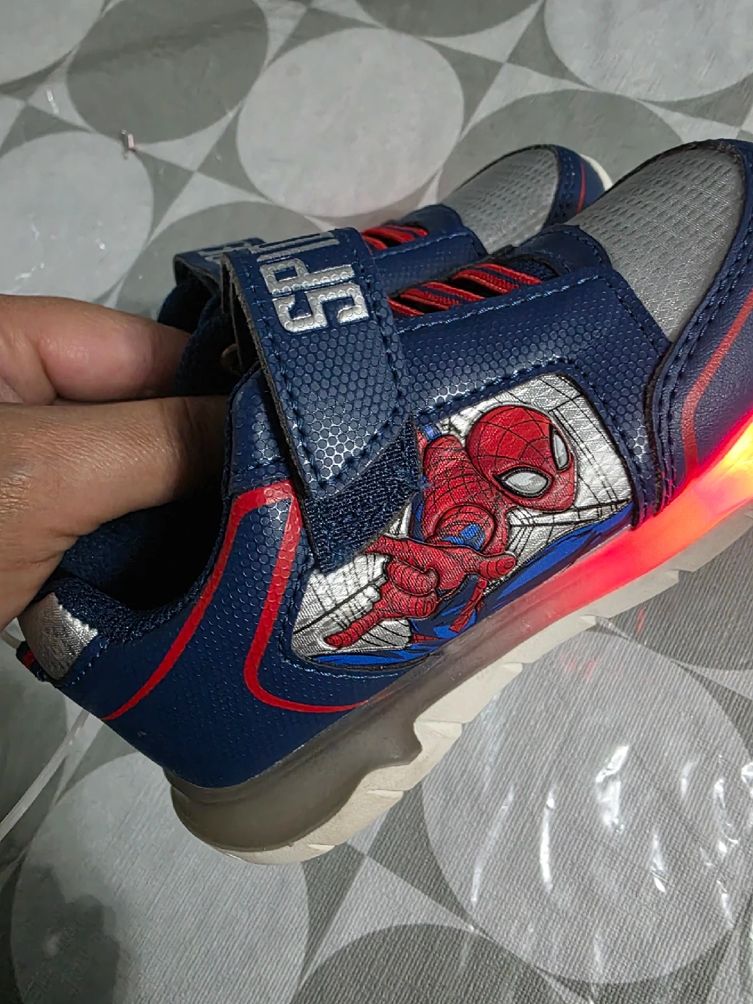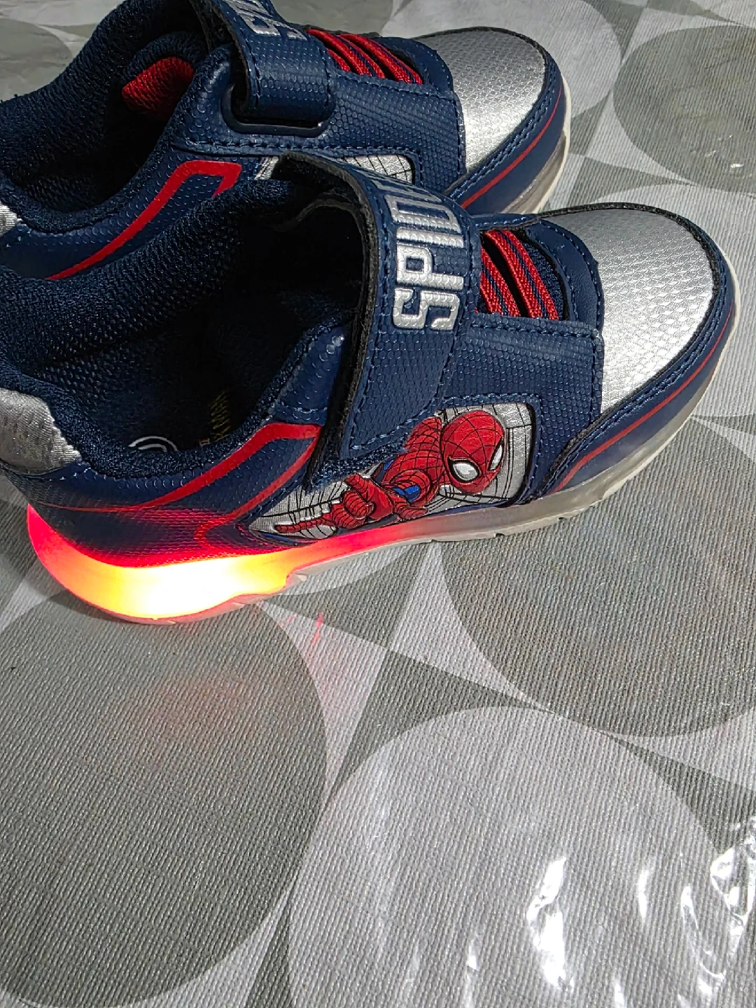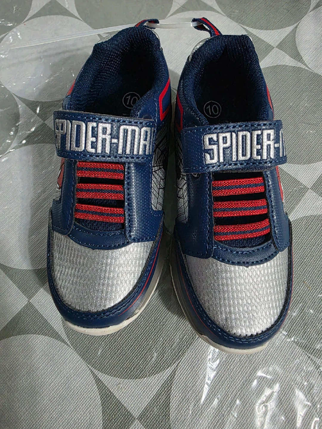 41Here are some Spider-Man light-up shoes for kids! They are size 10 and feature a fun Spider-Man design on the side. Perfect for any young fan!