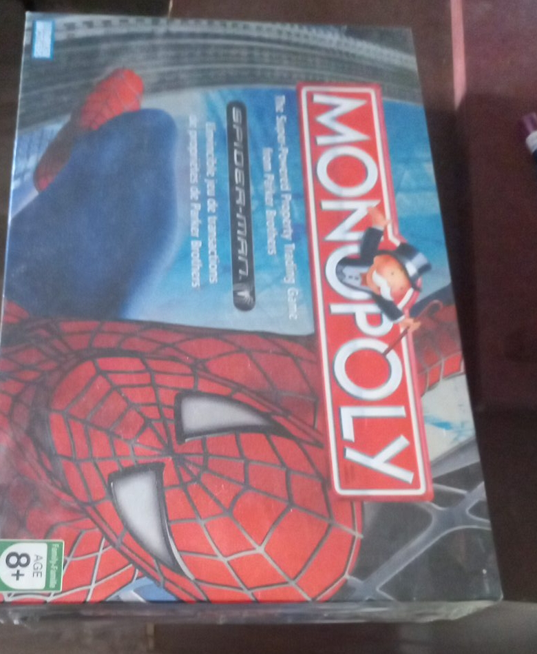 new never opened Spider-Man Monopoly board game! It's the super-powered property trading game from Parker Brothers. Suitable for ages 8+