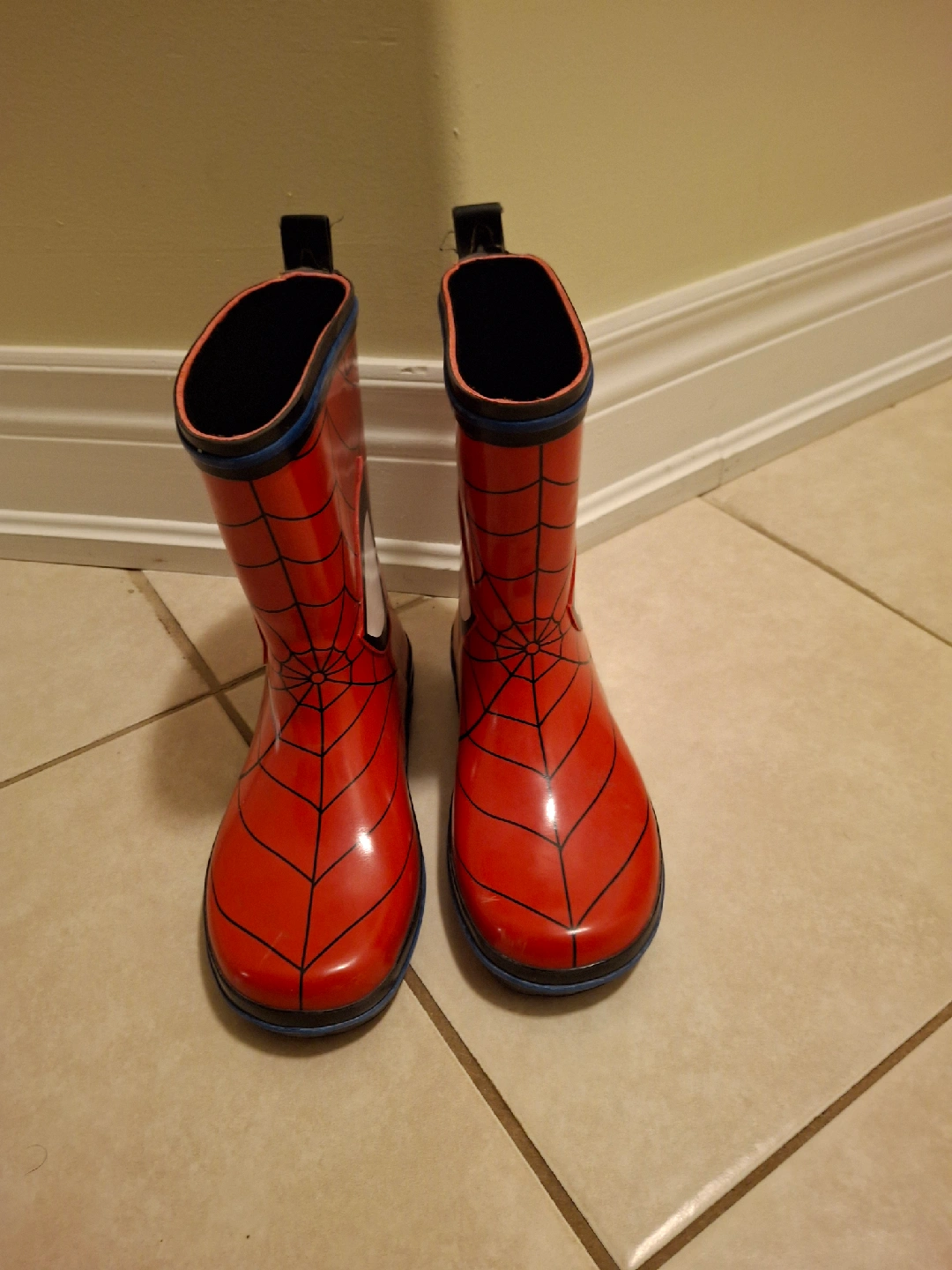 Selling a pair of Spider-Man rain boots in size 1. They're in great shape and ready for some puddle jumping!