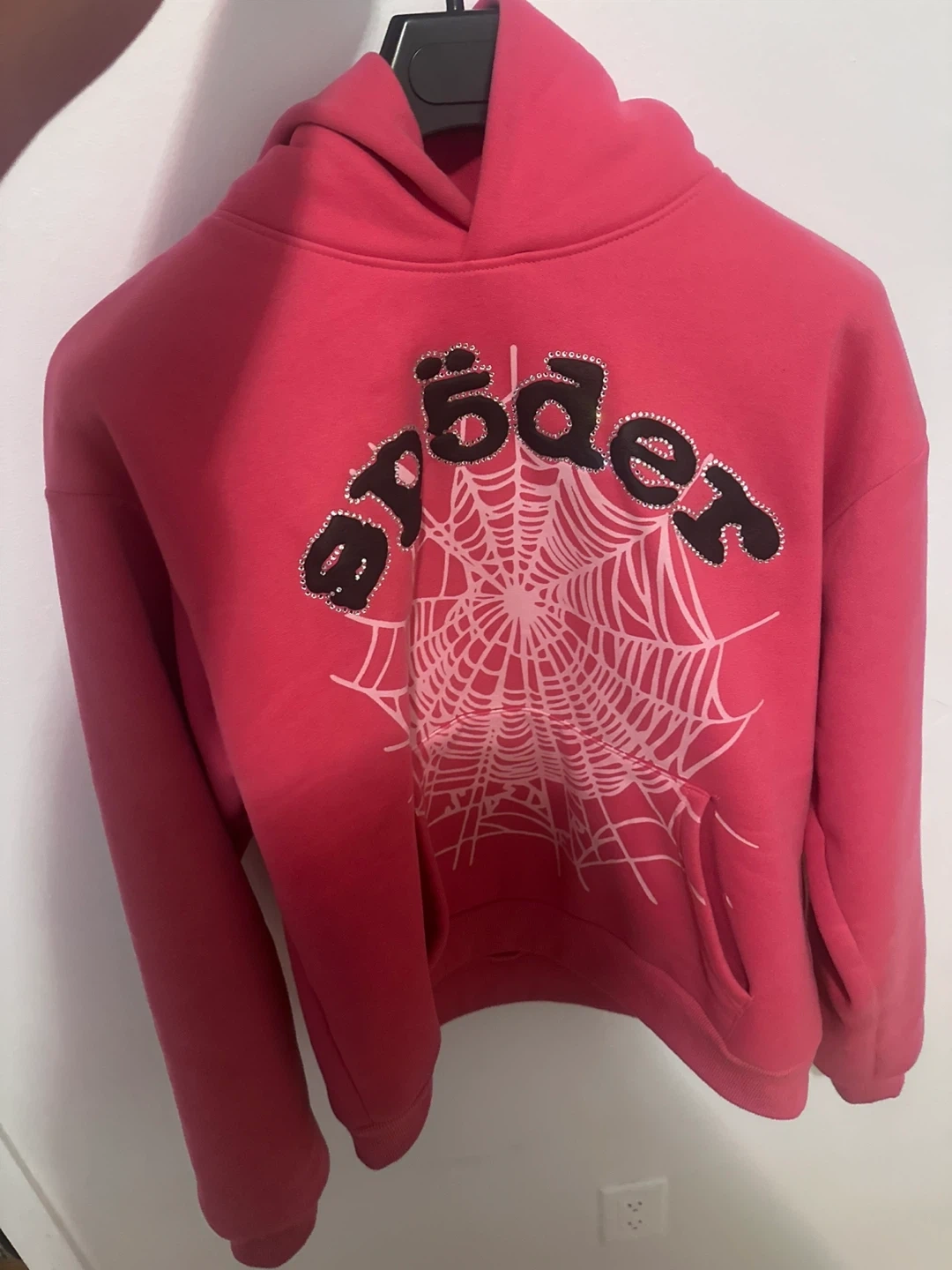 15Selling a pink Spider hoodie with a spiderweb design on the front and back. It's in great condition and ready for a new home!