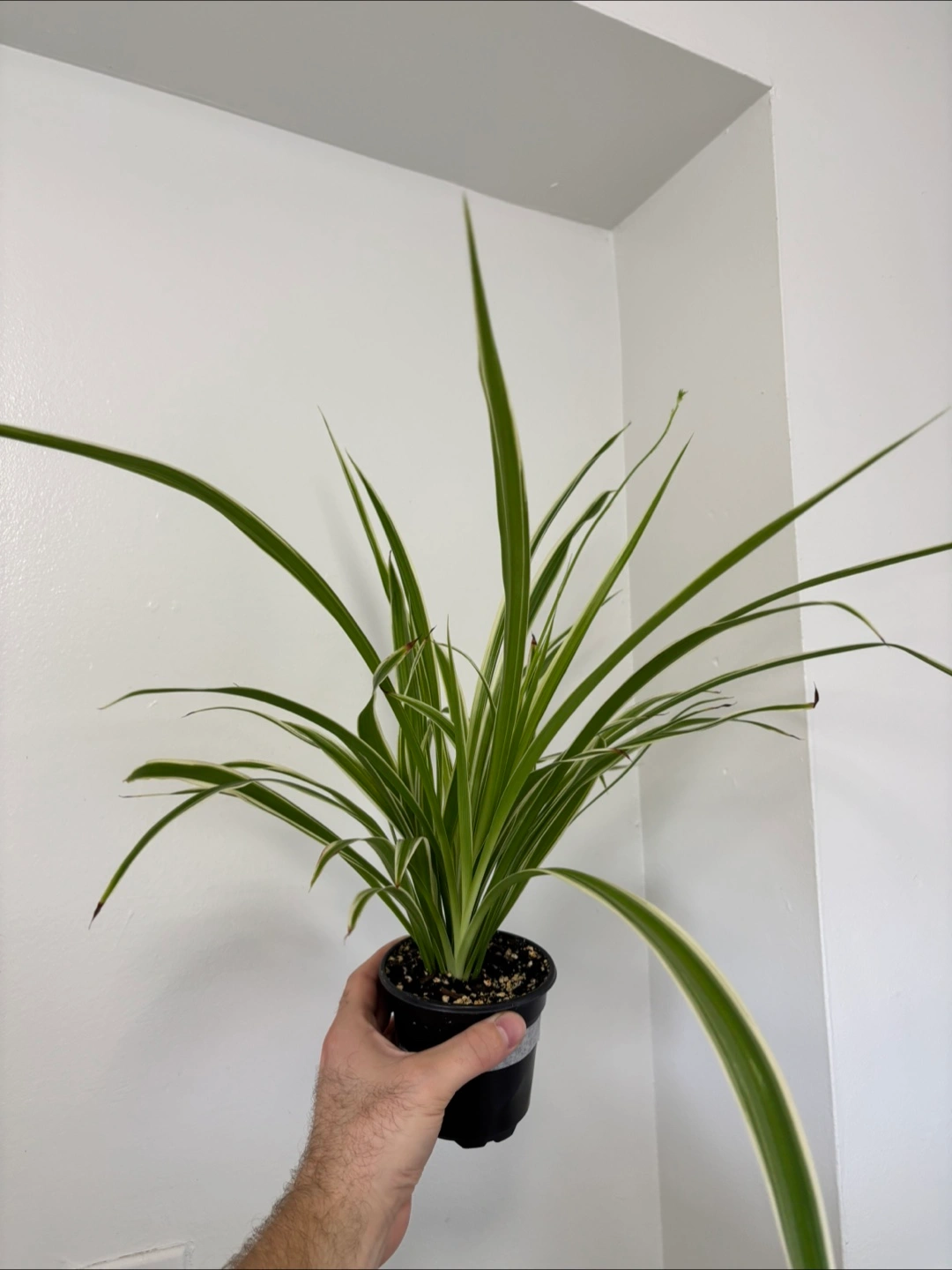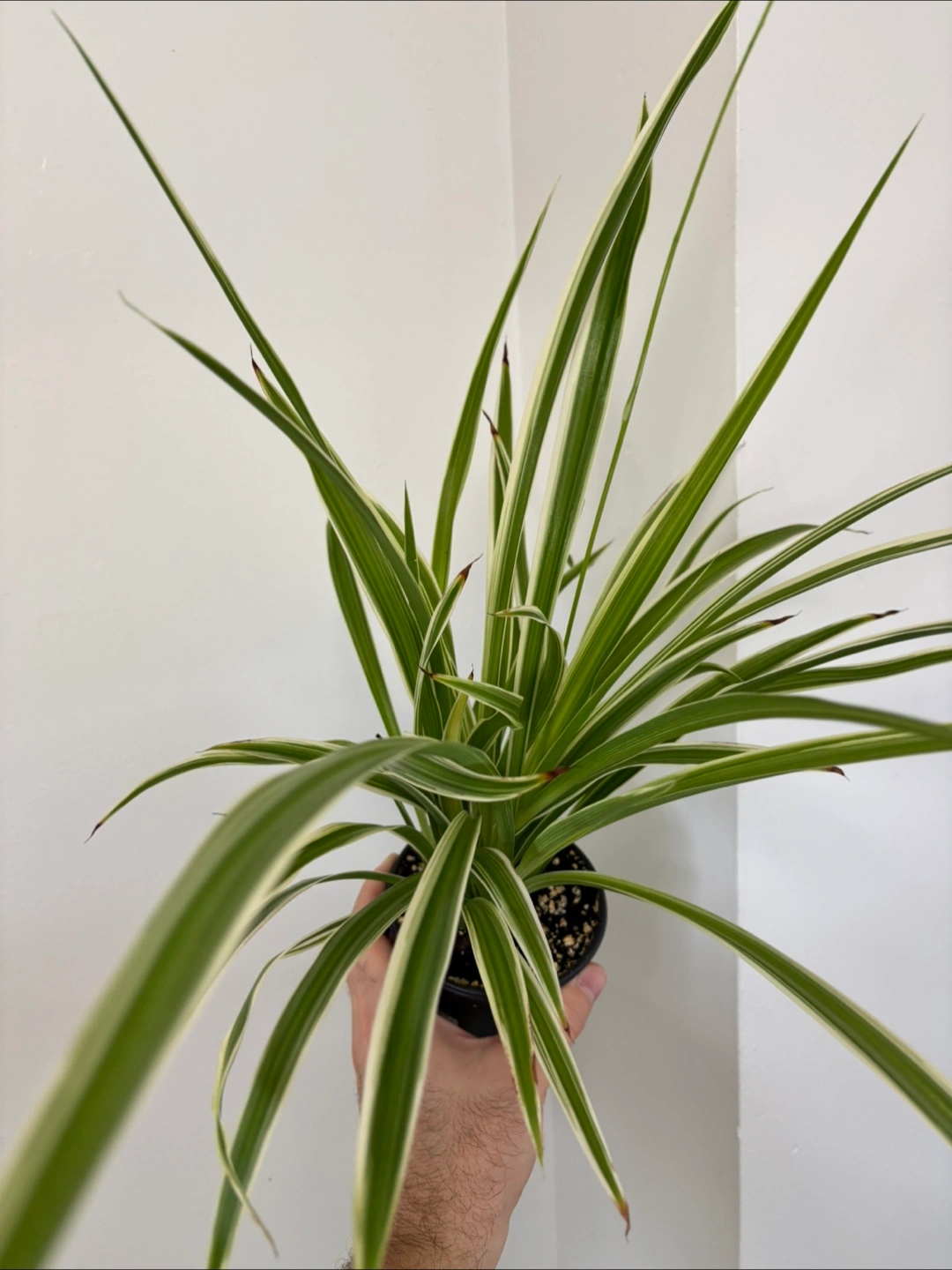 39Outer Variegated Spider Plant – $5 Brighten your space with this lush, outer-variegated Spider Plant (Chlorophytum comosum ‘Vittatum’ reverse form). Its vibrant green leaves edged with creamy white provide a fresh, tropical look—perfect for shelves, desktops, or hanging planters. This well-rooted plant comes in a 4” plastic nursery pot and is easy to care for, making it ideal for beginners or seasoned plant lovers alike. It is also about to flower and produce baby plants. Care Tips: Bright, indirect light Water when the top inch of soil is dry Pet-friendly and air-purifying Pick-up near Dundas West Station.