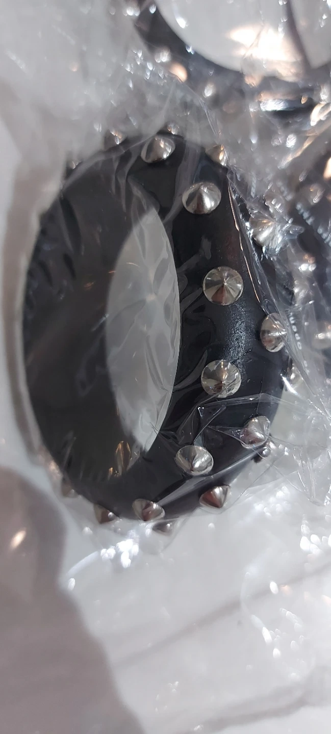 15Here's a cool spiked bracelet! It's black and has silver-coloured spikes around it. Perfect for adding a bit of edge to your outfit