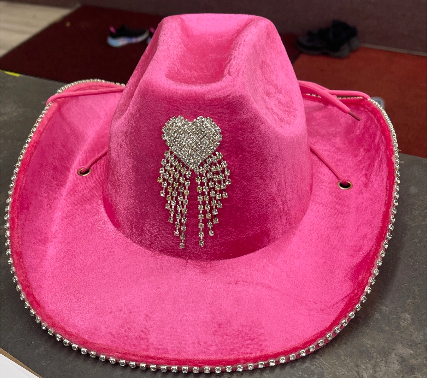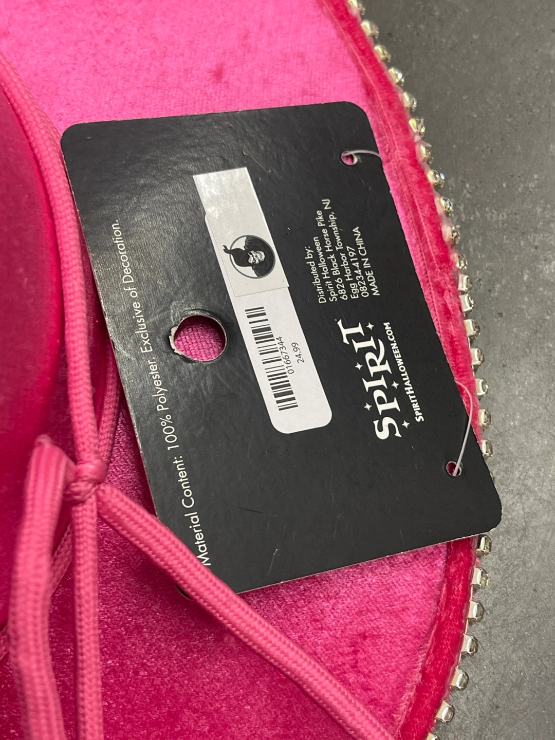 337Howdy, partner! I'm selling a fun pink cowboy hat from Spirit Halloween. It's made of 100% polyester and has some sparkly decorations to make it extra special. Material content: 100% polyester, exclusive of decorations