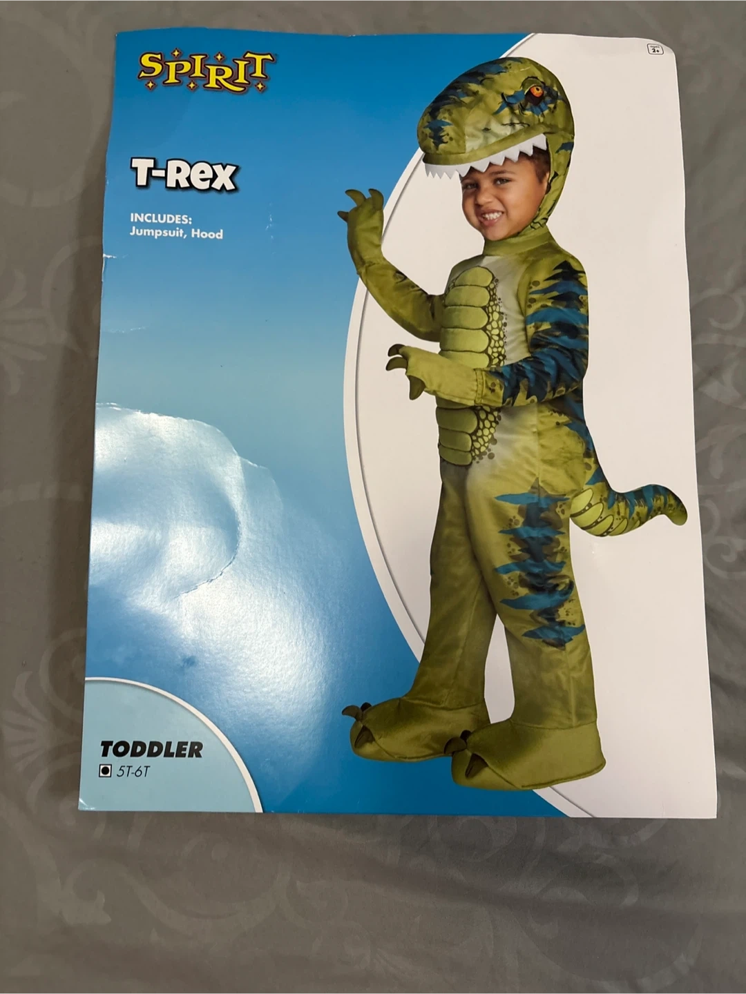 113Selling a Spirit Halloween T-Rex costume for toddlers, size 5T-6T! The costume includes a jumpsuit and hood, perfect for Halloween or dress-up. New without tag and ready for a new little dinosaur enthusiast. never worn