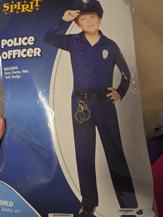 60Selling a Spirit brand police officer costume for kids! It's a size small (4-6) and includes the shirt, pants, hat, belt, and badge. Perfect for dress-up or Halloween!