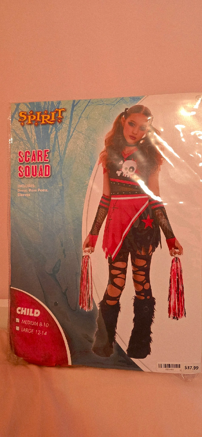 10Selling a Spirit Scare Squad child's costume. It includes the dress, pom poms, and sleeves. The size is Medium (8-10). Originally bought for $37.99