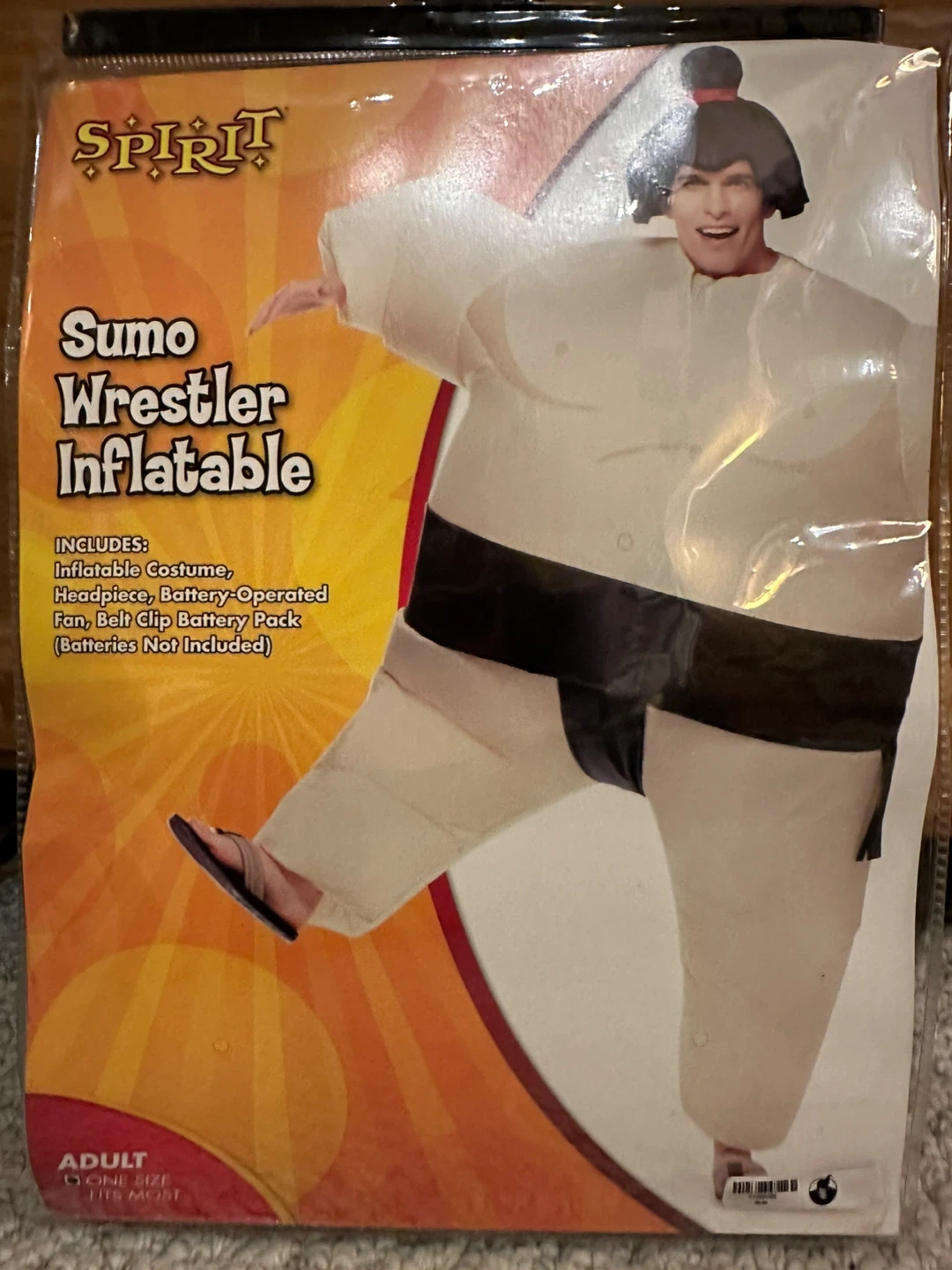 Get ready to rumble with this Spirit Sumo Wrestler Inflatable Costume! It's an adult one-size-fits-most costume that includes the inflatable costume, a battery-operated fan, a headpiece, and a belt clip battery pack. Note that batteries are not included. This costume is sure to be a hit at your next party or event