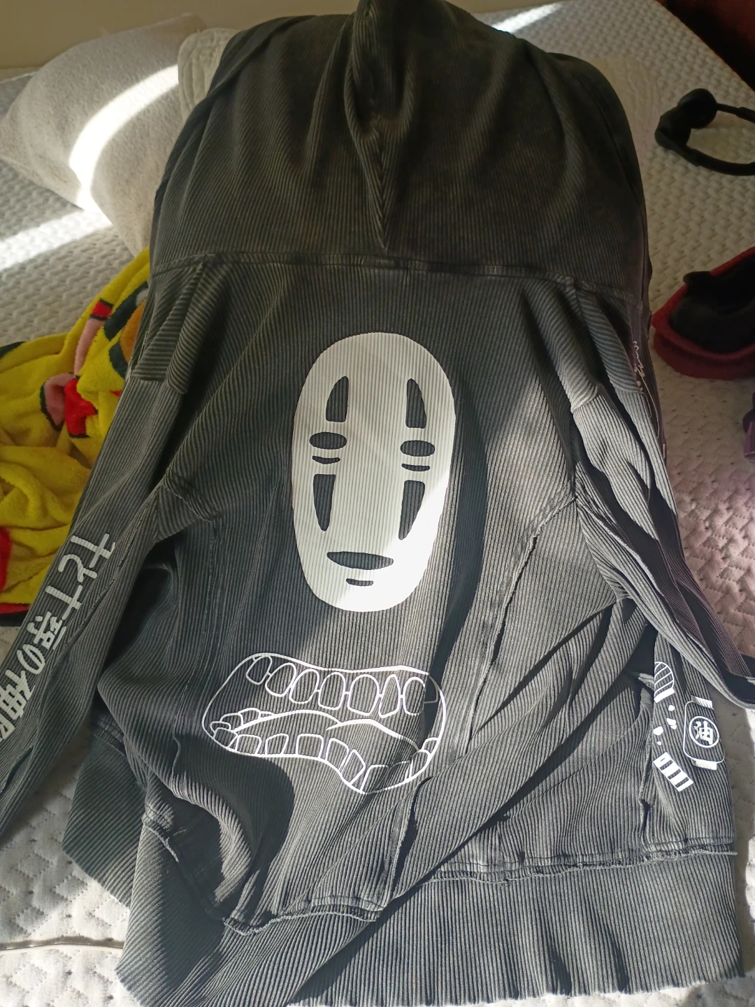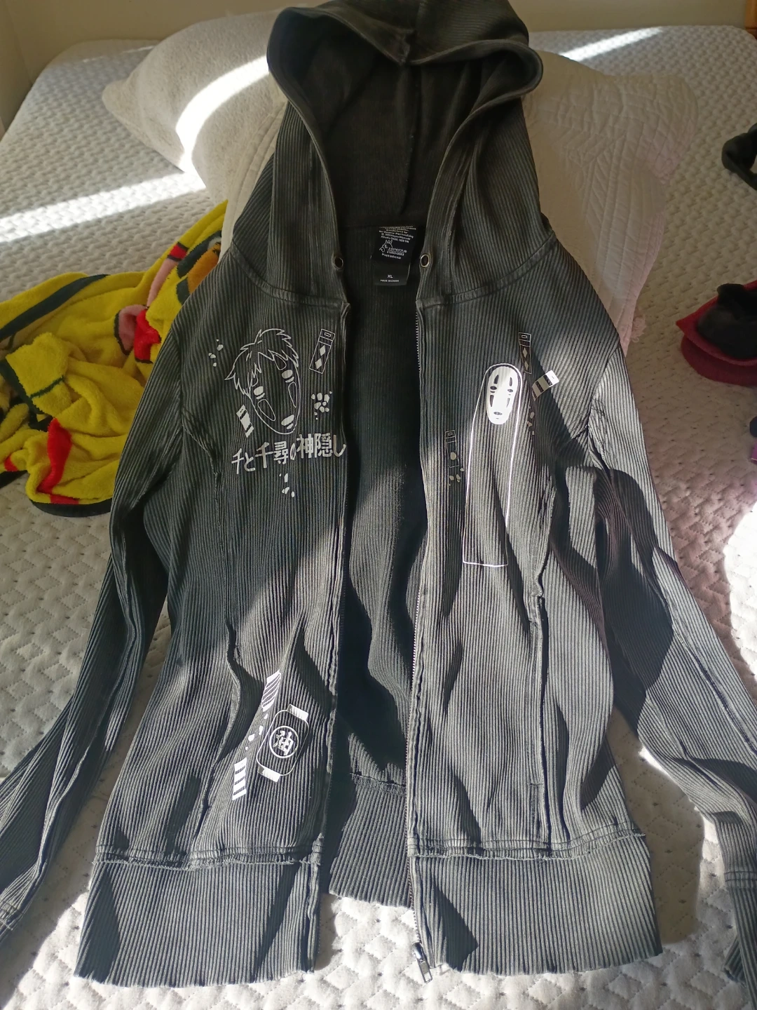 15Cozy up with this Spirited Away zip-up hoodie! It's a size XL and features designs from the beloved Studio Ghibli film. Perfect for any fan!