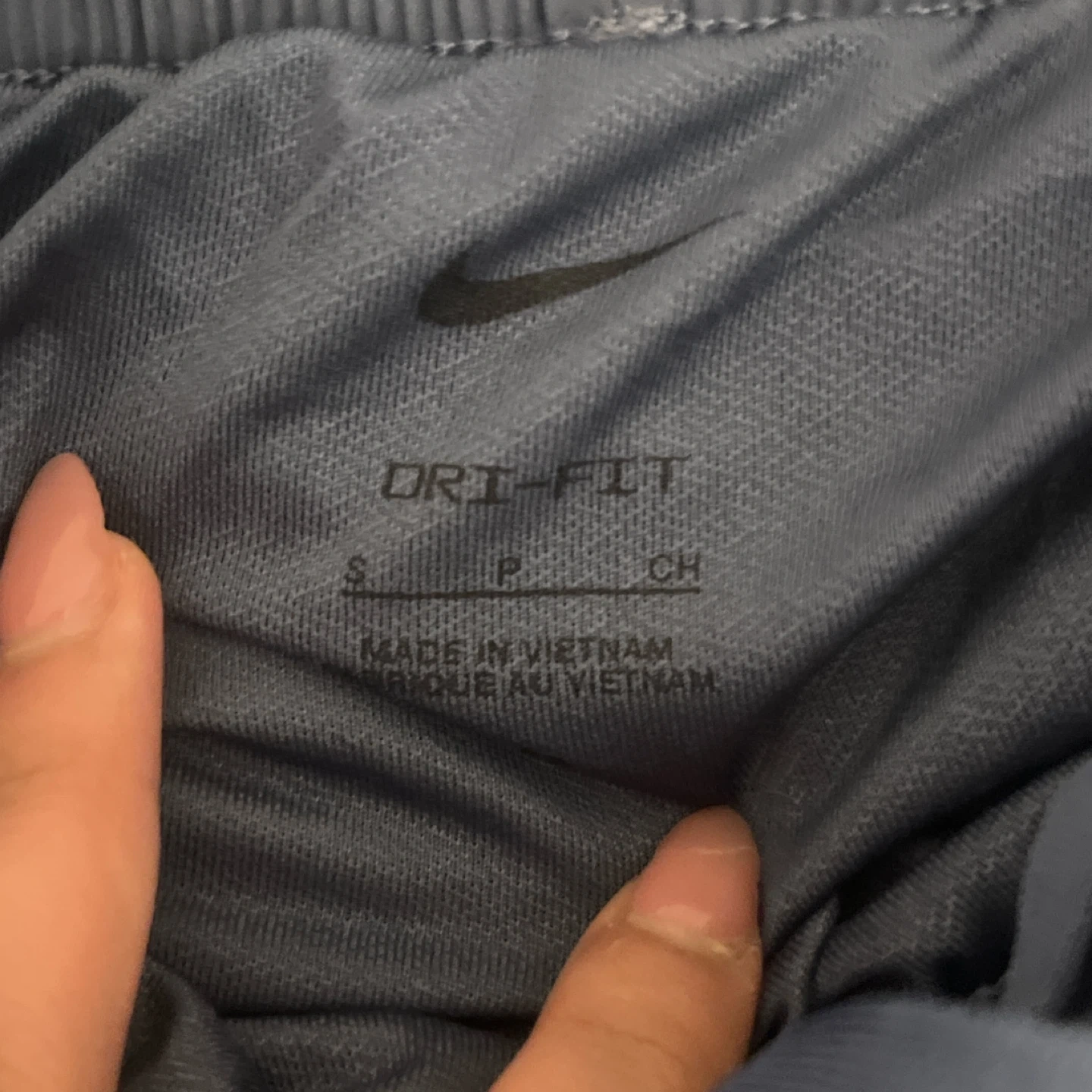 Lightweight grey Nike Dri-FIT running shorts. Features a comfortable elastic waistband with a drawstring and built-in briefs. Made in Vietnam. Perfect for your next run! NEVER WORN