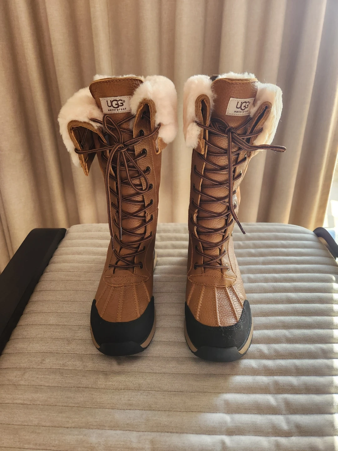 Selling a pair of UGG Adirondack III boots in great condition! These are waterproof and perfect for Canadian winters. They're a women's size 7 and feature a cozy, plush lining to keep your feet warm and dry.