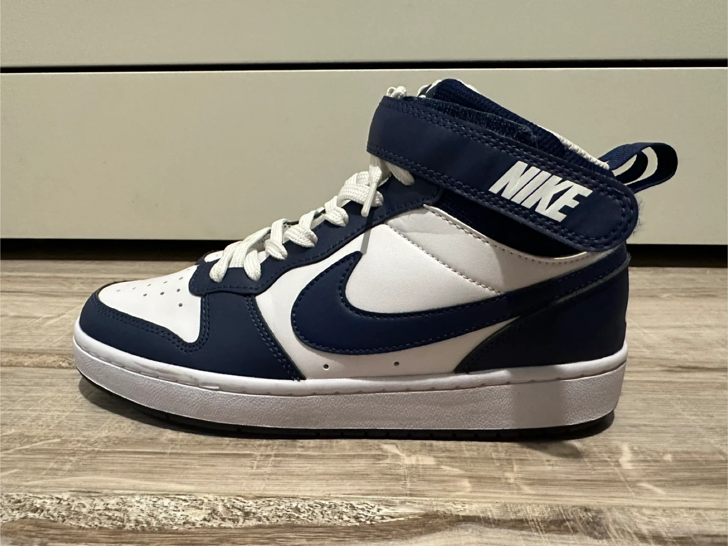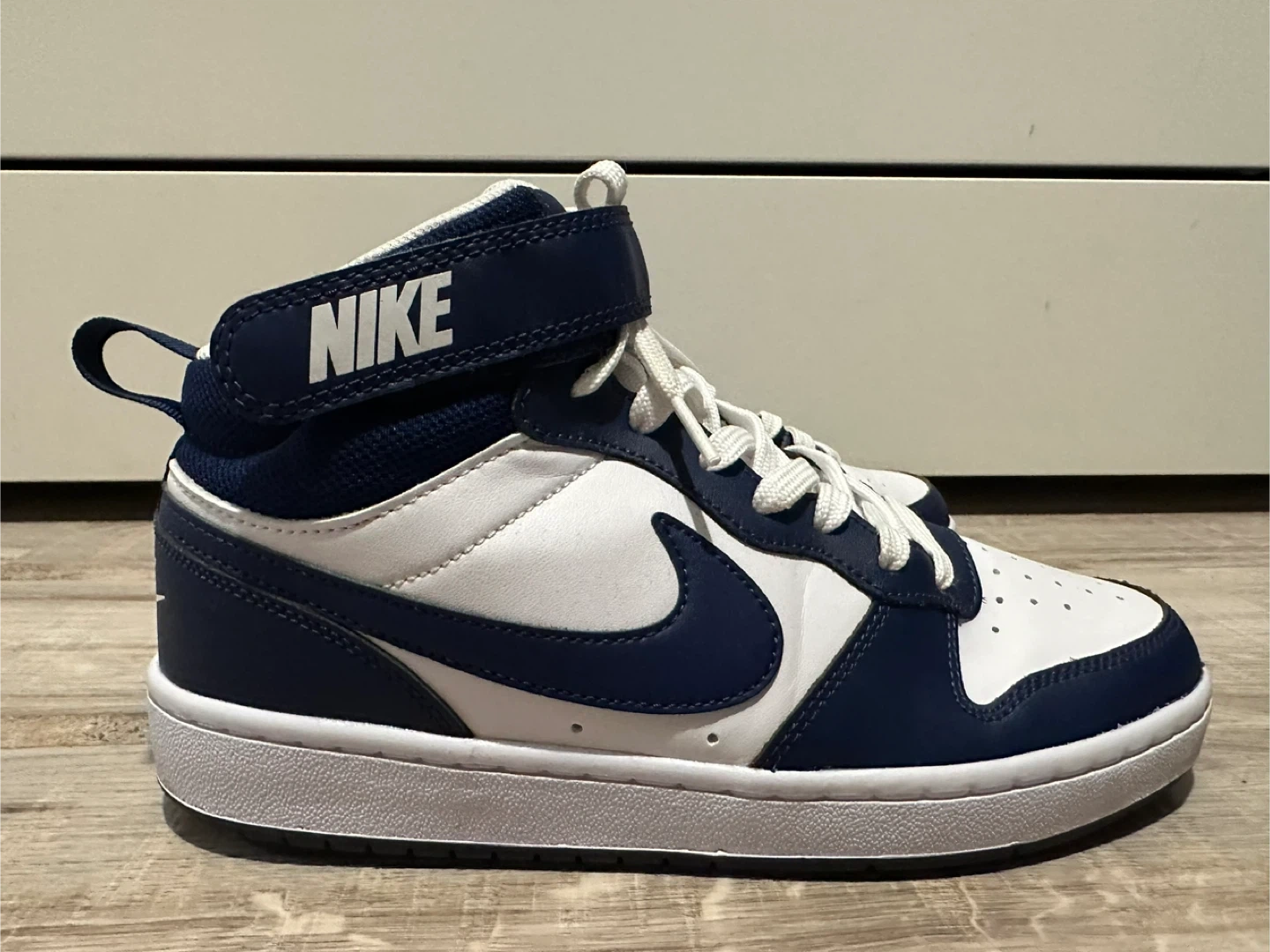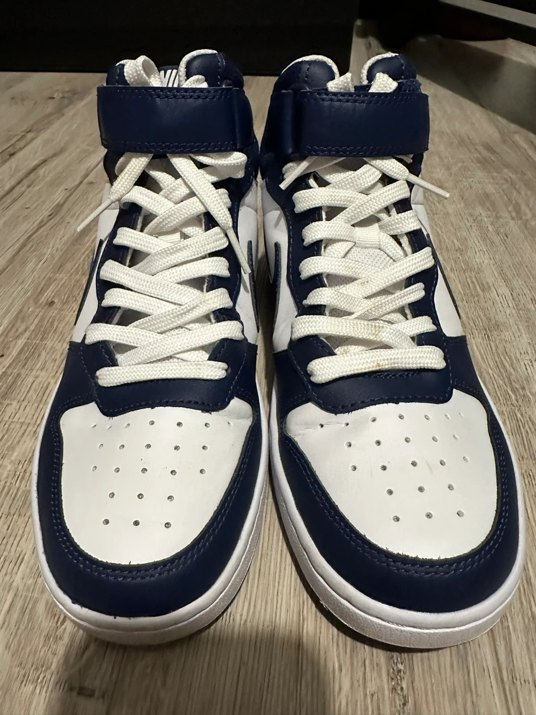 These Nike Court Borough Mid 2 shoes are in great condition! They feature a classic high-top design with a secure strap. Also comes with crease guard. Worn only once