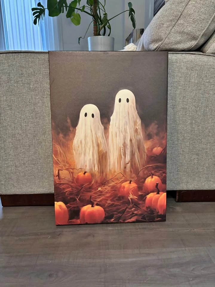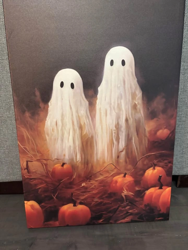 10Ghost couple print on canvas, framed by me onto 23.6”X15.7”X1.5” wooden frame. Light weight and ready to hang with sawtooth hardware attached. Pick up in North Bowmanville near Northglen Blvd.