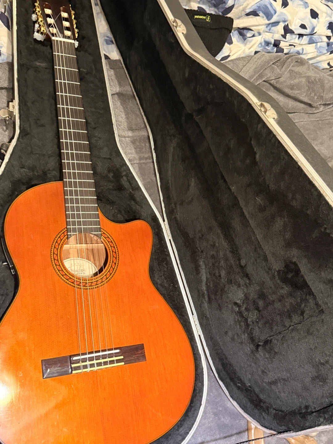 Fender CG-25SCE acoustic-electric guitar. Made in Taiwan. Includes hardshell case. Features a cutaway design. This limited addition nylon-string guitar is ready for your music!