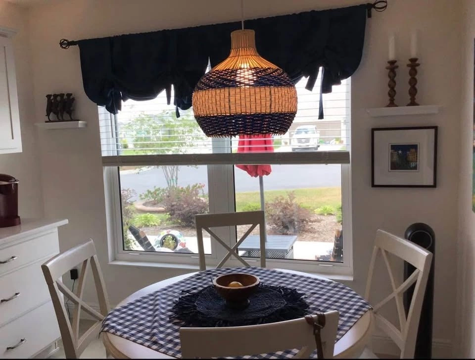 BRAND NEW Hand-Woven Rattan Chandelier, Rattan Pendant Light Fixtures Ceiling, Wicker Hanging Lamp for Dining Room Bedroom Kitchen Island Blue. High-quality, durable materials with a unique, colorful design. Compatible with E26/E27 bulbs (up to 60W): LED, CFL, incandescent, or halogen (bulb not included). Adjustable hanging height up to 78.74 inches. Easy and quick installation with included hardware and instructions. Stylish rattan design ideal for home décor and island lighting. Retail price: $456 (before tax). Selling price: $85. Pick up: Salem and Taunton.