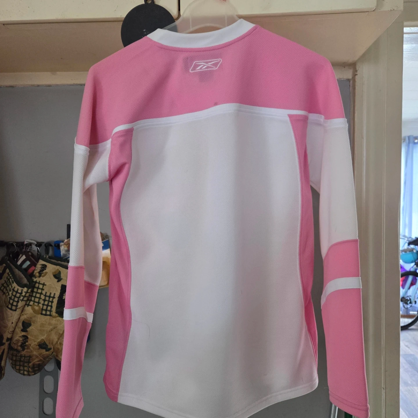 Reebok Calgary Flames women's hockey jersey. Pink and white design with team logo. Size Medium but fits small