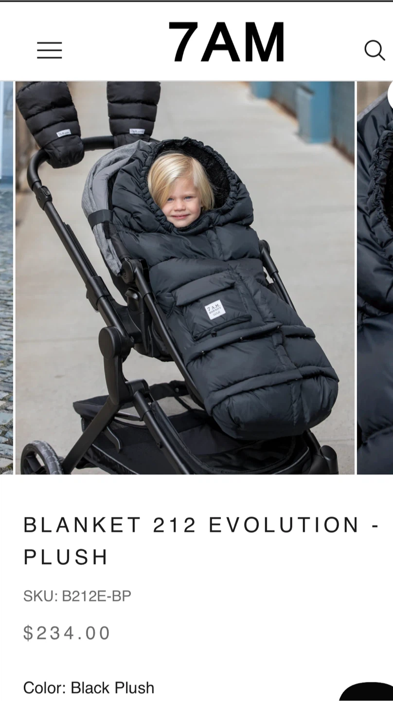 Black 7 A.M. Enfant BLANKET 212 evolution stroller footmuff. Very warm!! Universal fit on all strollers. Barely used.