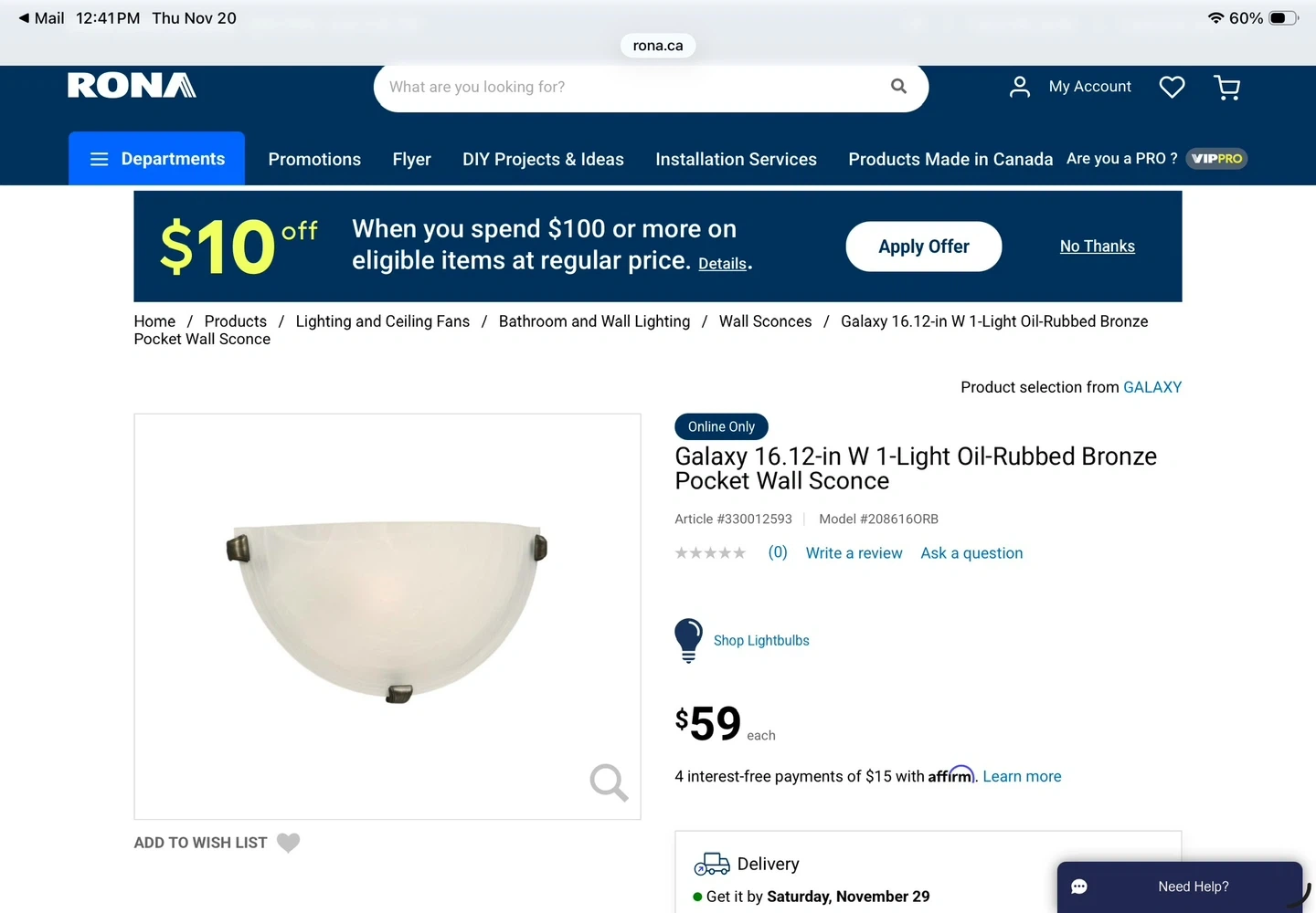 This is a Galaxy 1-light pocket wall sconce in an oil-rubbed bronze finish. It features a swirl glass shade. It's an online exclusive. A total of 6 available $25 each or all 6 for $100. They retail for over $60 EACH!
