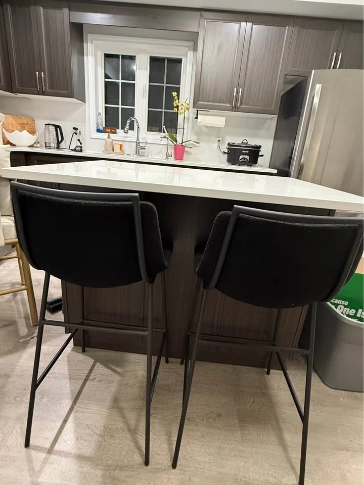 I bought these stools when we moved into our new home. I love them, but they don't match the decor as well as I'd hoped. Very lightly used. Perfect for an island counter height. Currently on the Bouclair site, one stool is originally sold for $180.00. If this ad is up, the item is still available.