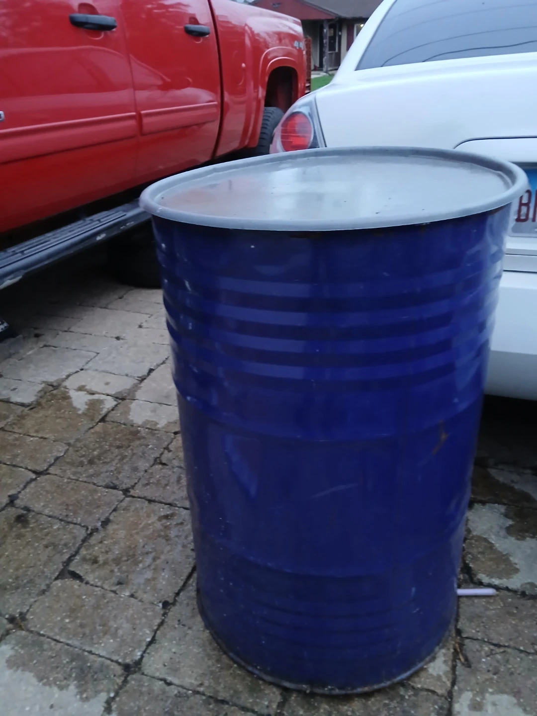 This is a blue metal barrel with a removable lid. It's about 55 gallons in size. Great for storage or as a trash can! I wanted gone ASAP. Because it's using it a lot of space in my garage. I want everything gone. I wanted gone ASAP. Because it's using it a lot of space in my garage. I want everything gone.