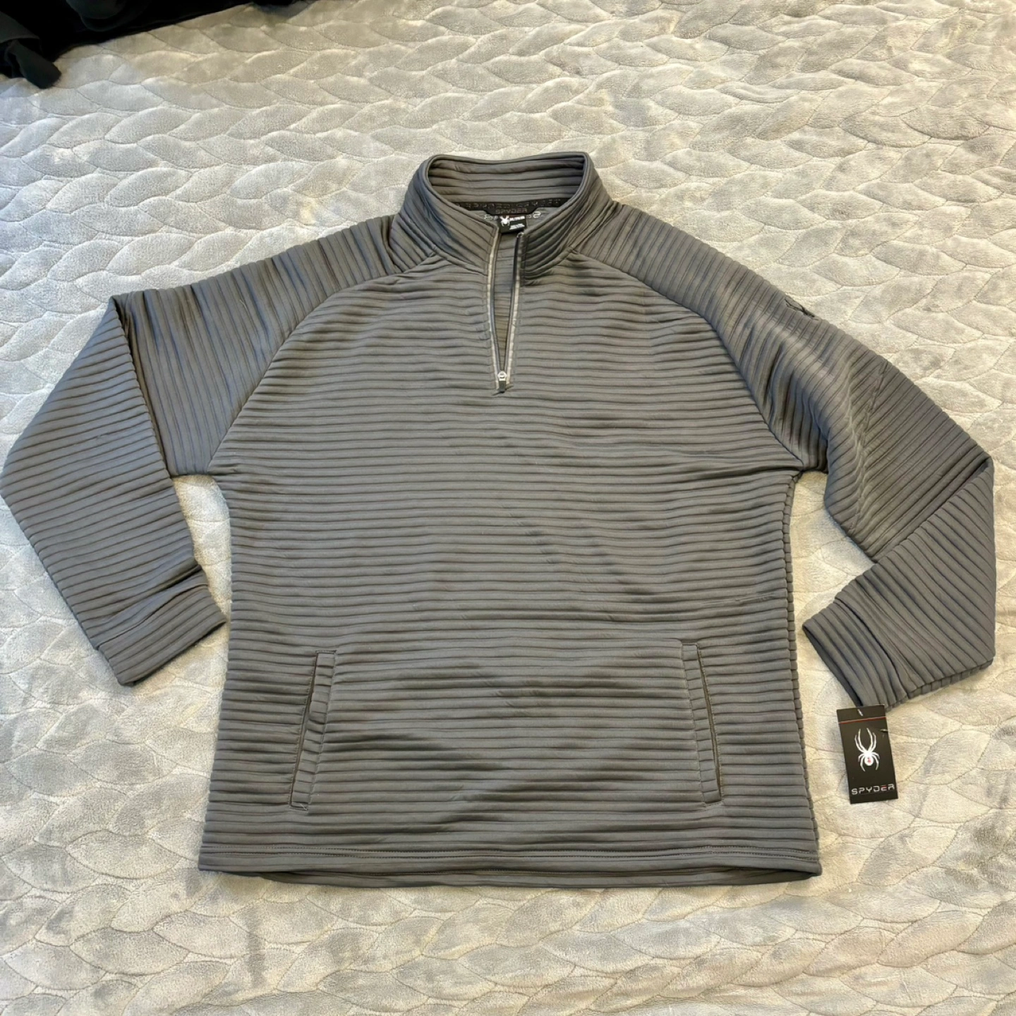 174Brand new! Never worn! Tags still attached! Grey 1/4 zip sweater. Long sleeves. Pocket on the left side.