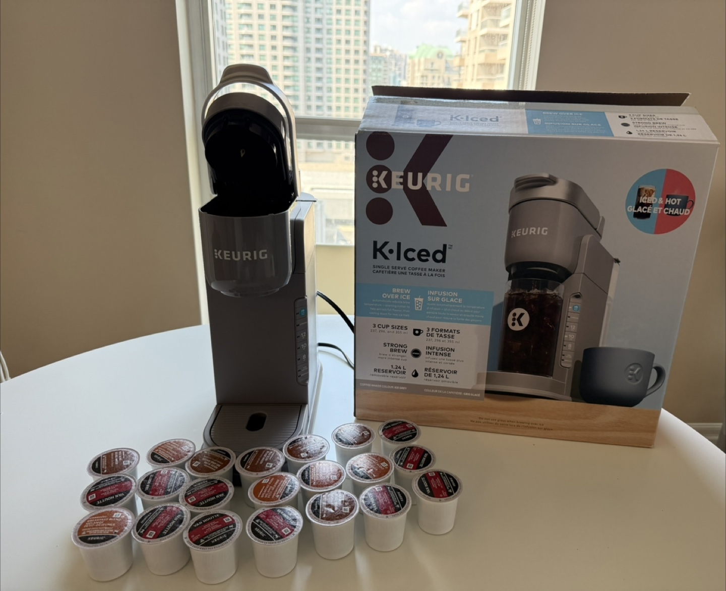 Selling a Keurig K-Iced single serve coffee maker. It's in great shape and comes with the box. Perfect for brewing both hot and iced coffee! It has three cup sizes and a 1.24L reservoir. Also includes a variety of Van Houtte and Starbucks K-cups to get you started